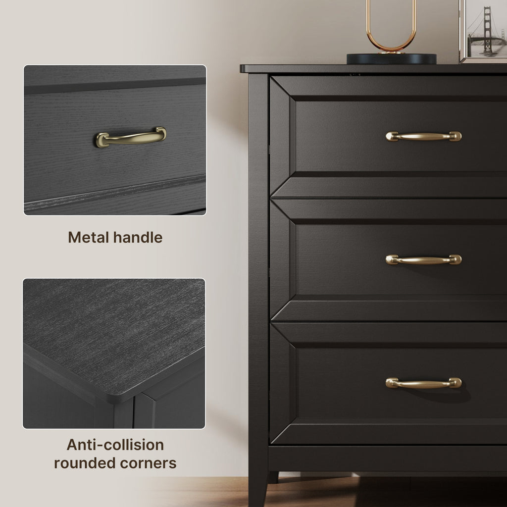 🎨 Sleek & Versatile Design: The black bedroom cabinet is simple yet stylish, seamlessly blending with metal handles to showcase your unique taste. Whether for storing clothes or displaying decorative items, it brings a fresh glow to your bedroom.