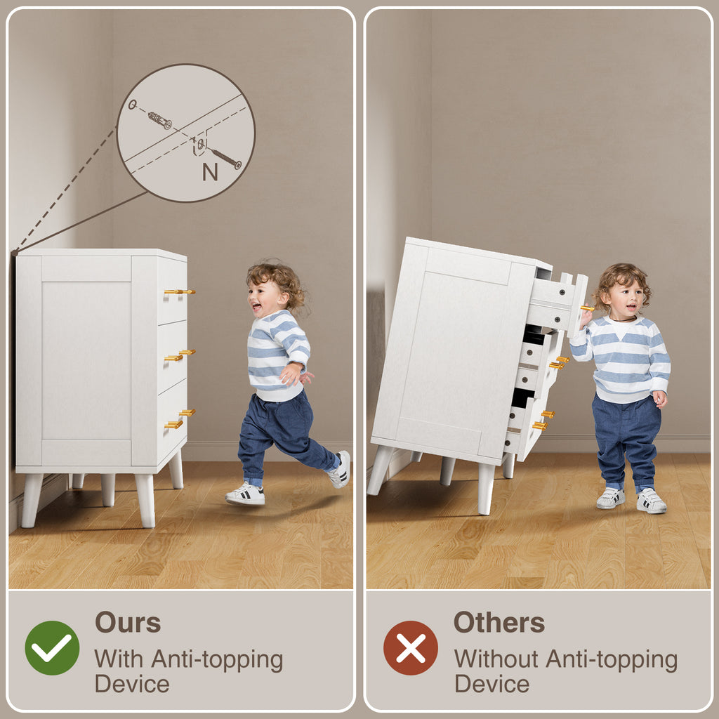 🛠️ Safe and Durable: High-quality engineered wood + reinforced legs = ultimate stability. Anti-tip device eliminates safety hazards.