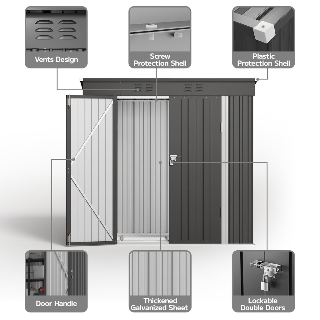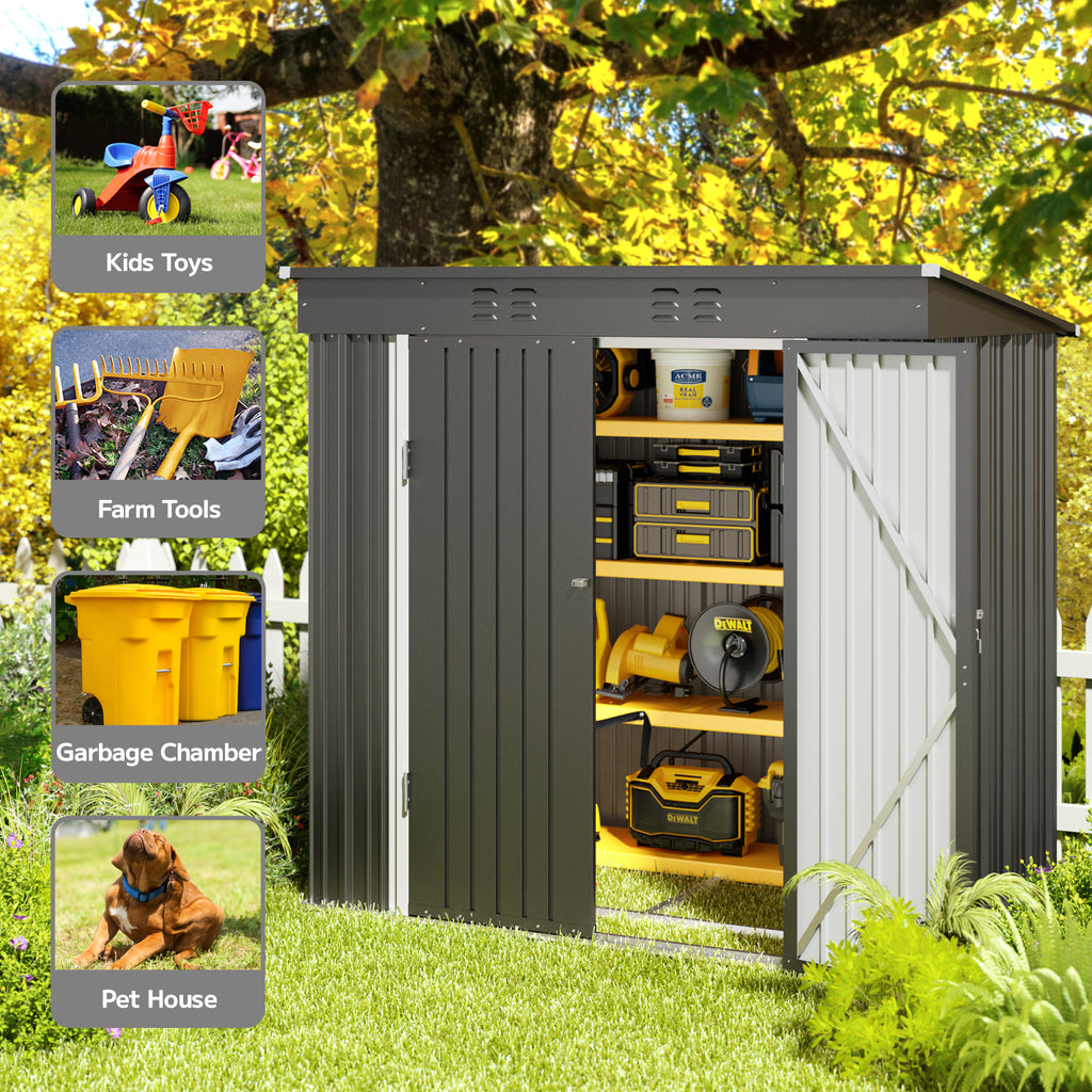 Asofer 6' x 4' FT Outdoor Storage Shed Metal Shed, with Sloping Roof and 2 Lockable Door, Dark Gray