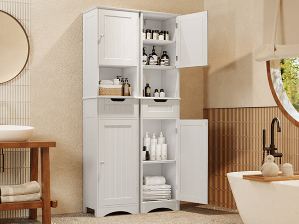 🛁【Multi-Functional and Versatile】 Merely use it as a bathroom cabinet? Definitely not! This versatile piece can serve as a storage cabinet to hold living room essentials; an entry cabinet for gloves, scarves, and pet supplies; a buffet cabinet to store bread baskets, bowls, plates, and spoons; a sunroom cabinet for extra supplies; a bookcase in your home office for documents and office supplies; and even a display cabinet for crafts and more.