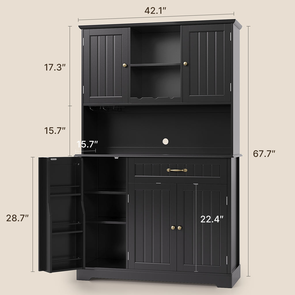 Asofer 67.7" Kitchen Pantry Cabinet with Solid Doors, Adjustable Shelves & Microwave Stand, Black