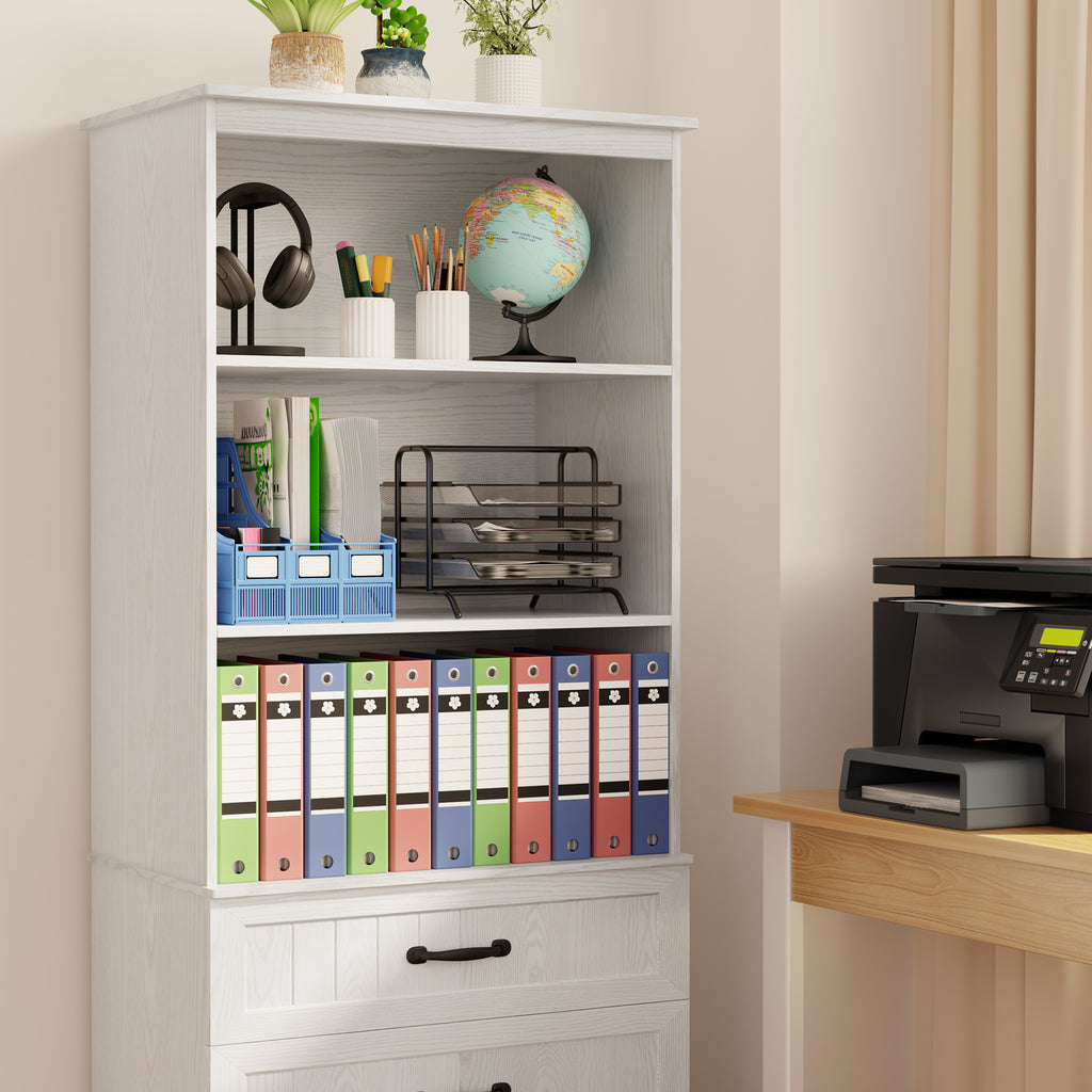 Asofer 69.7" Tall White Bookcase with 3 Drawers, Storage Cabinet for Office, Living Room, Bedroom