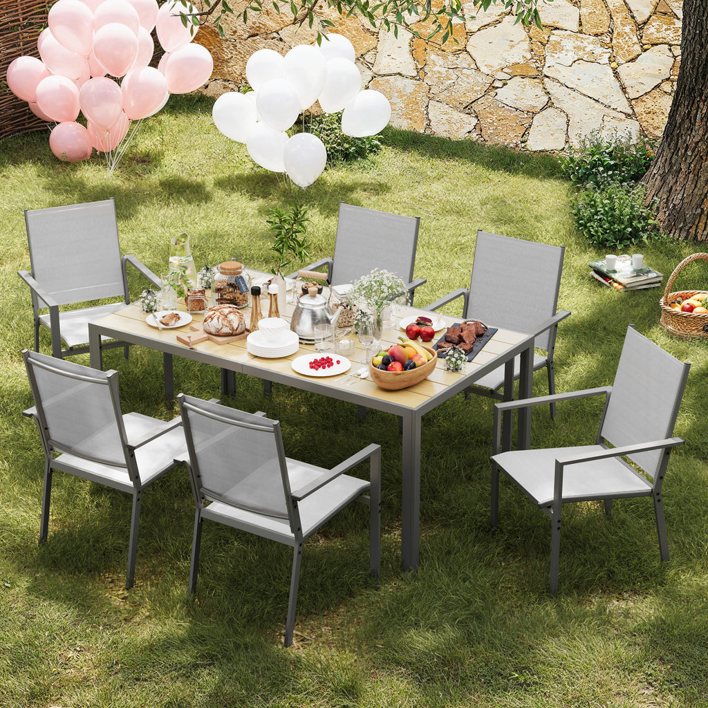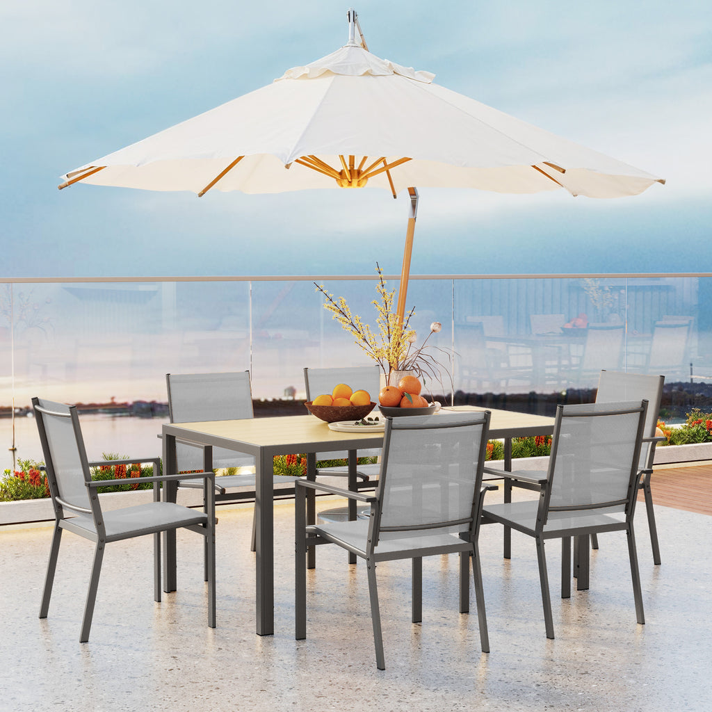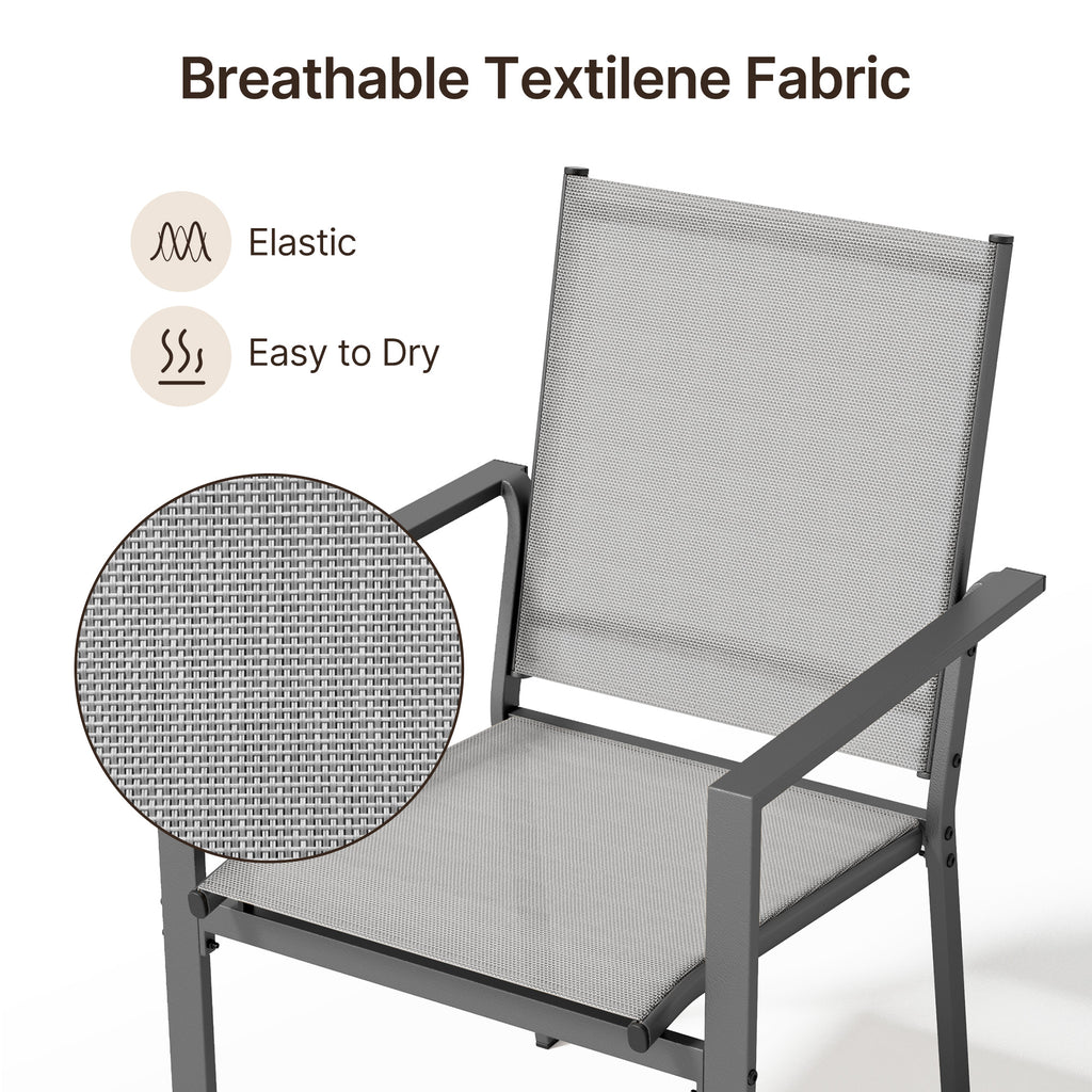 Asofer 7 Pieces Outdoor Patio Dining Set, 1 Rectangle Steel Square Table & 6 Stackable Textilene Chairs, Gray