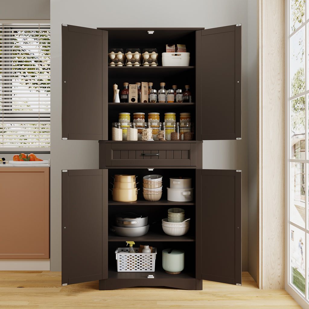 Asofer 71" Kitchen Pantry Storage Cabinet with 4 Doors & 4 Adjustable Shelves & 1 Door
