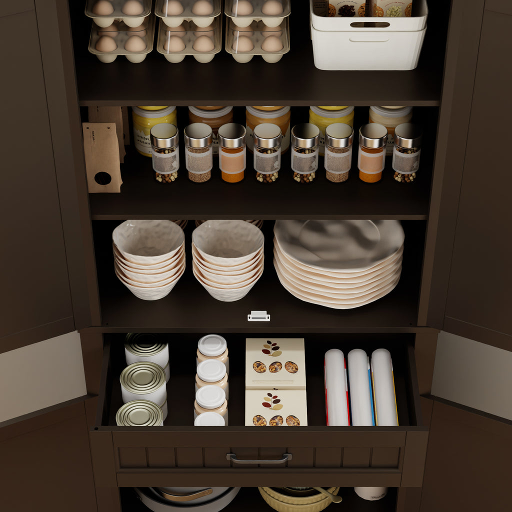 🎄【Large Storage Space】This kitchen pantry cabinet features two magnetic door cabinets and a spacious pull-out drawer, providing multifunctional storage. Each upper and lower cabinet is equipped with two adjustable shelves for storing snacks, toys, tableware, and other household items, so you won't have to worry about storage space.