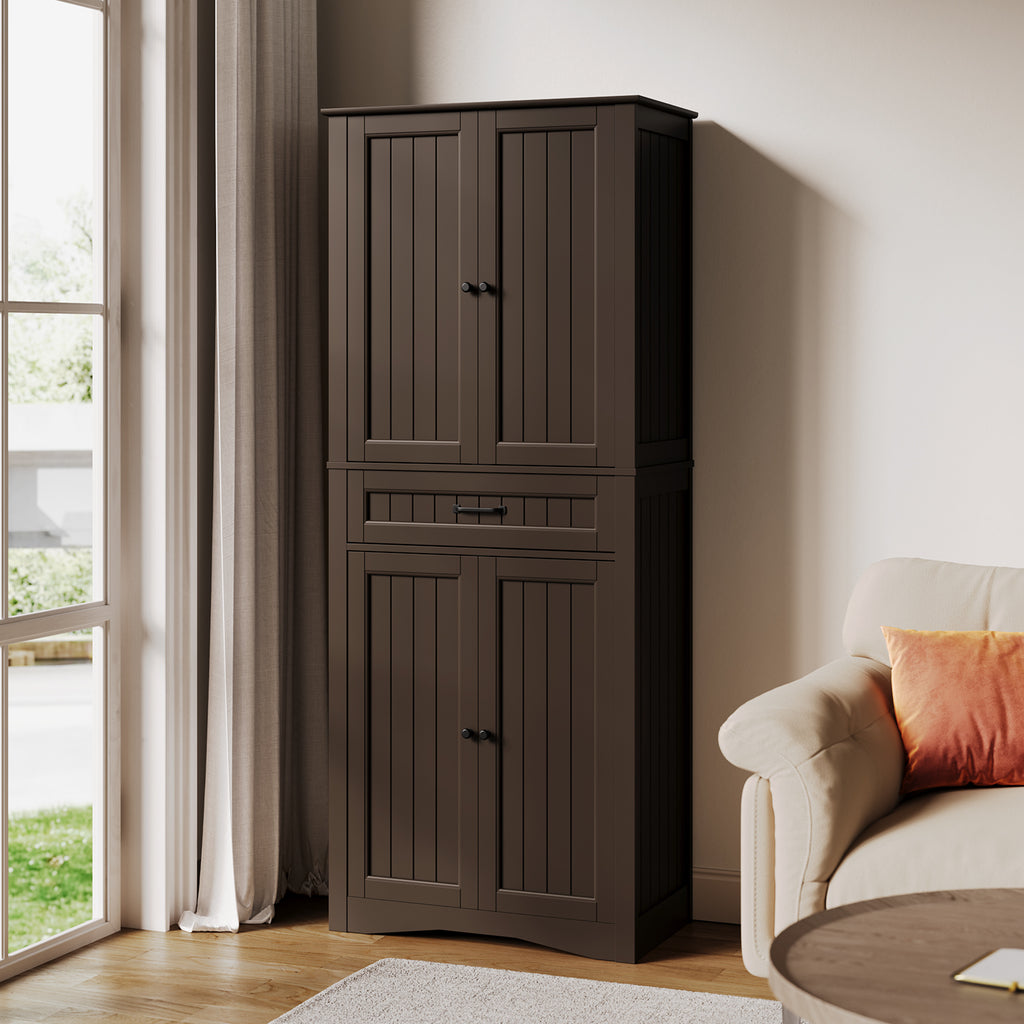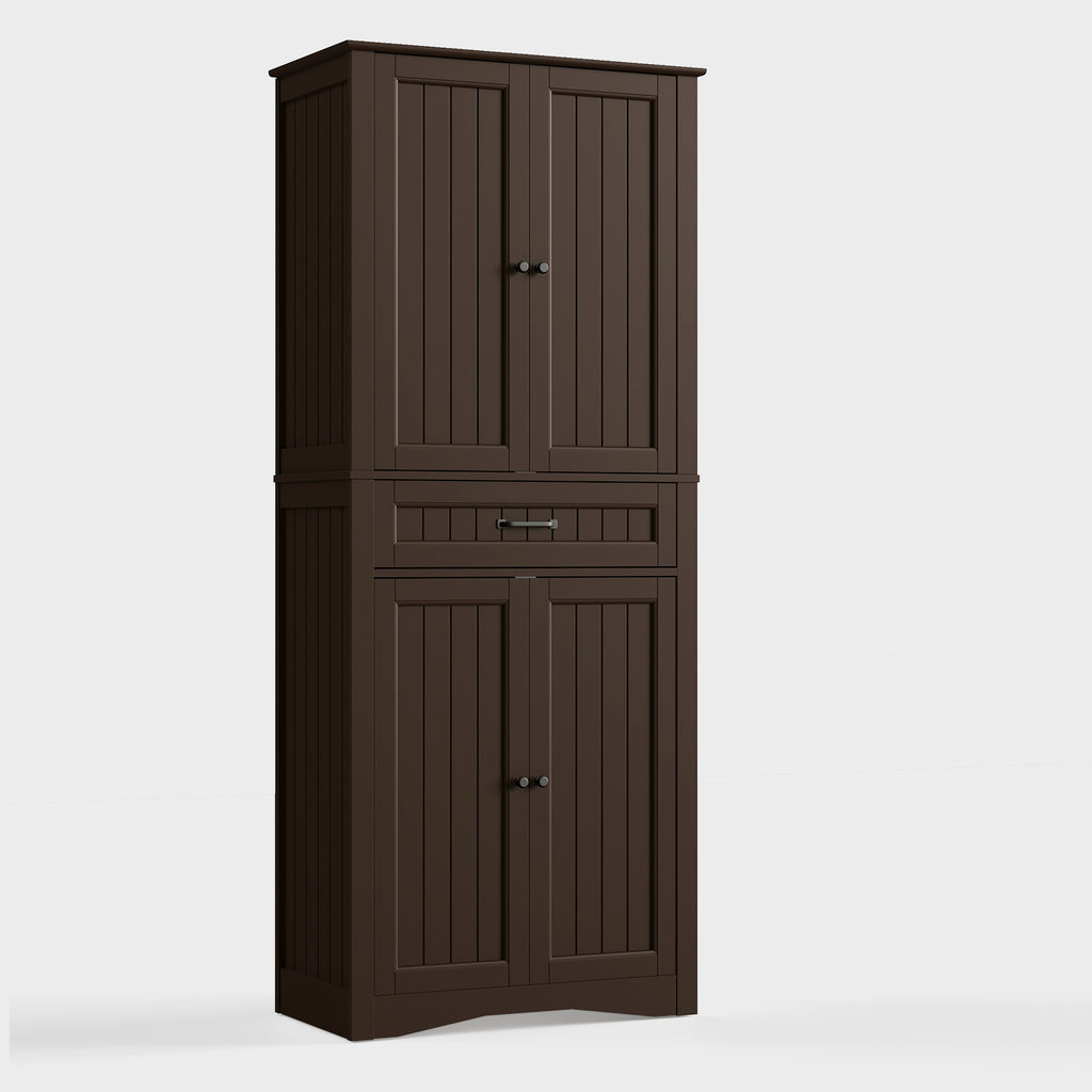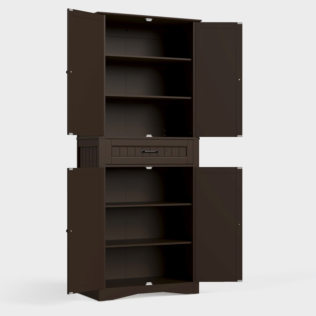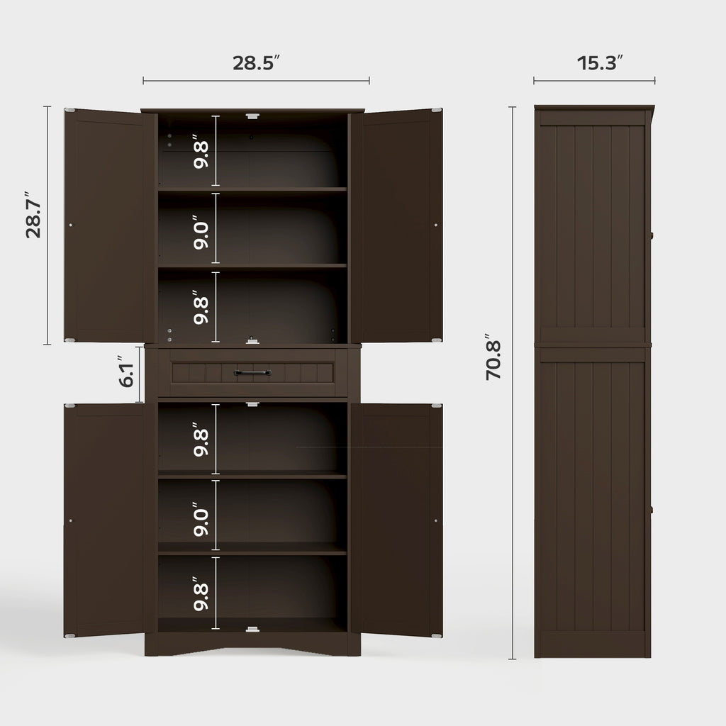 Asofer 71" Modern Pantry Storage Cabinet with Doors and Adjustable Shelves for Kitchen, Living Room, Dark Brown