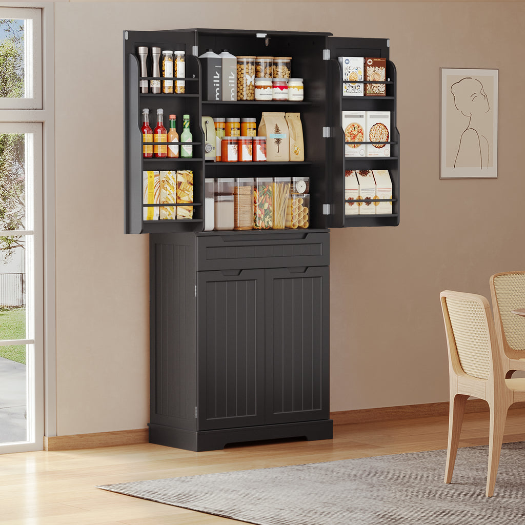 Asofer 71" Pantry Cabinet with Doors & Shelves - Huge Storage Kitchen Cabinet, Adjustable Shelves, Black