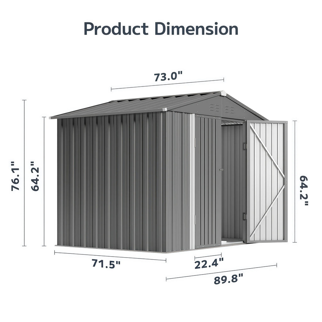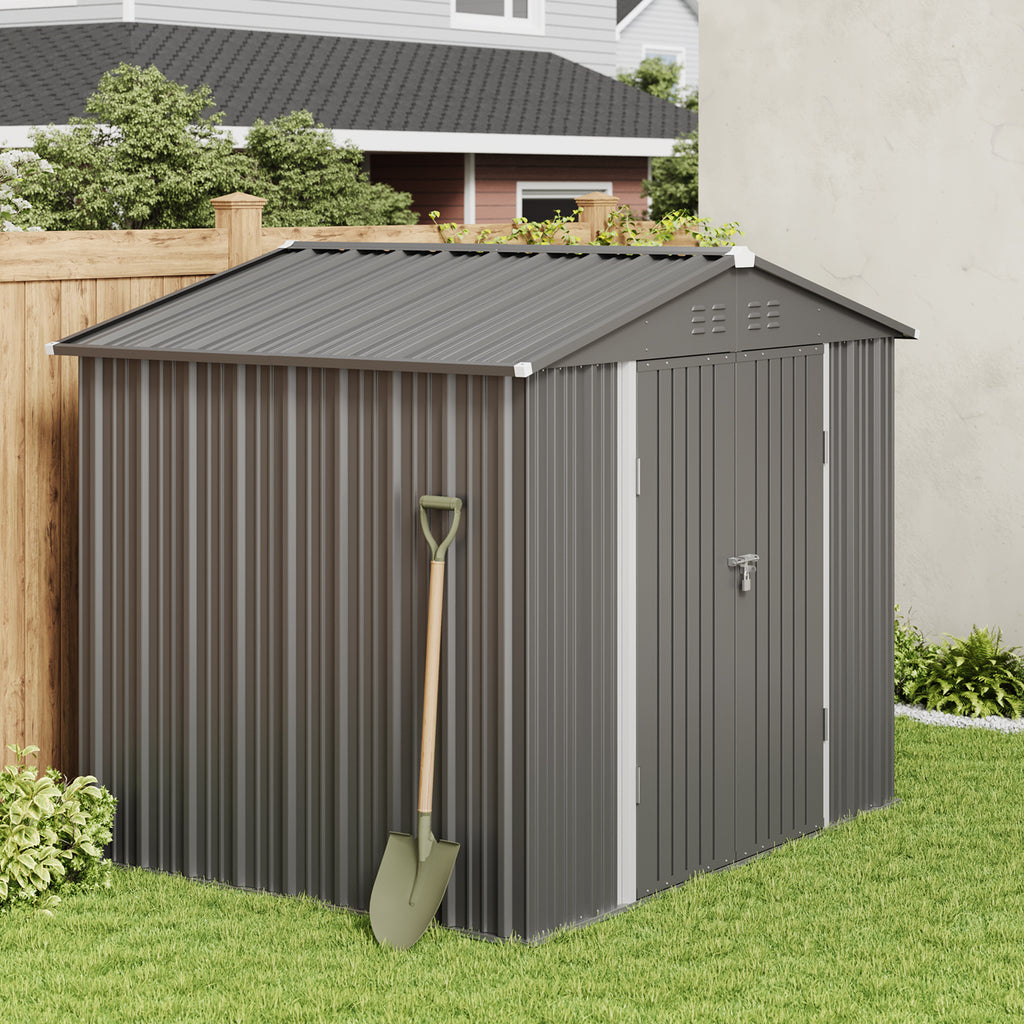 Asofer 8' x 6' Outdoor Storage Shed, Tool shed, Outdoor Storage Clearance for Backyard Patio, Gray