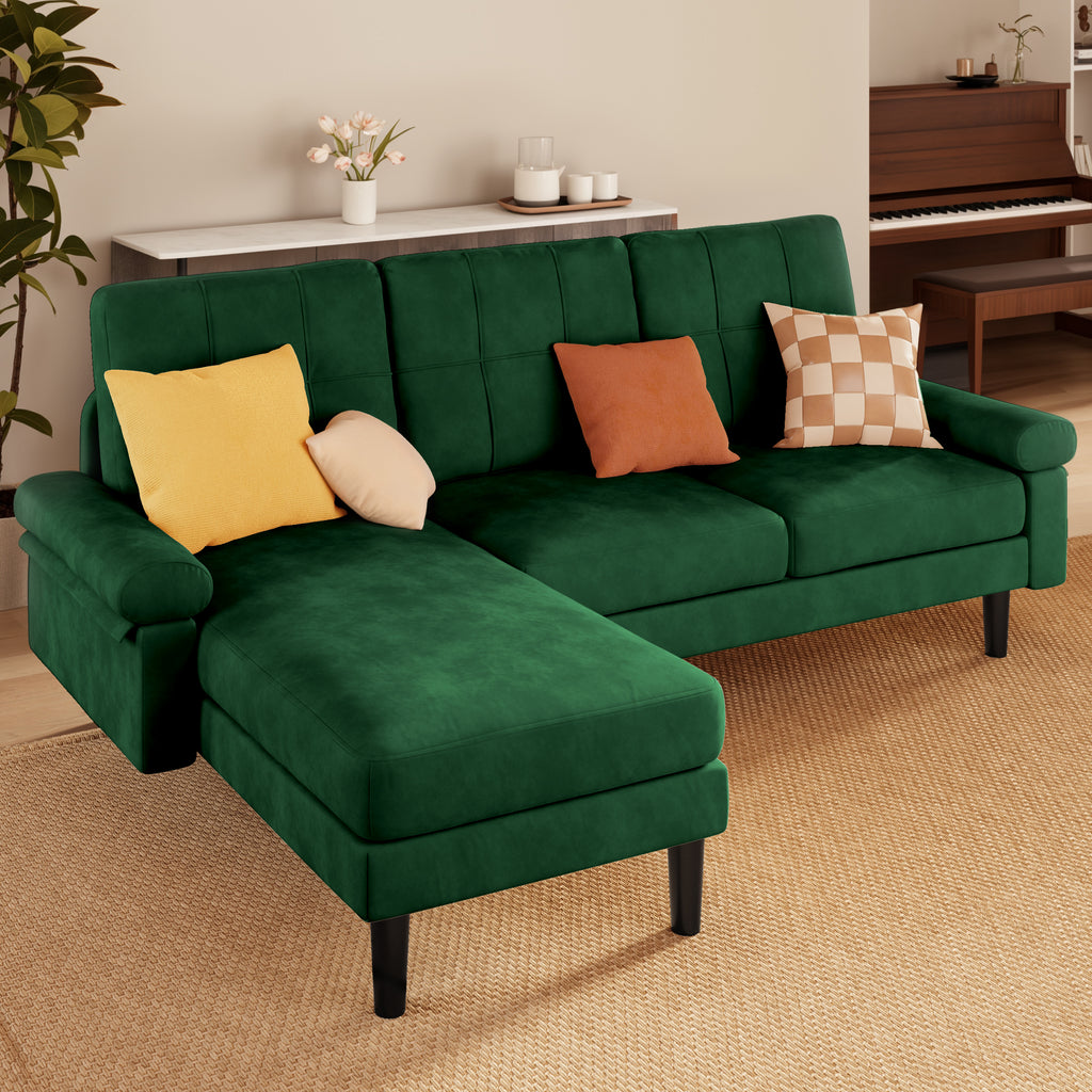 Asofer 82" Sofa Couch, L Shaped Convertible Sectional Sofa with Soft Velvet, Modern Couches for Living Room Apartment Office, Emerald