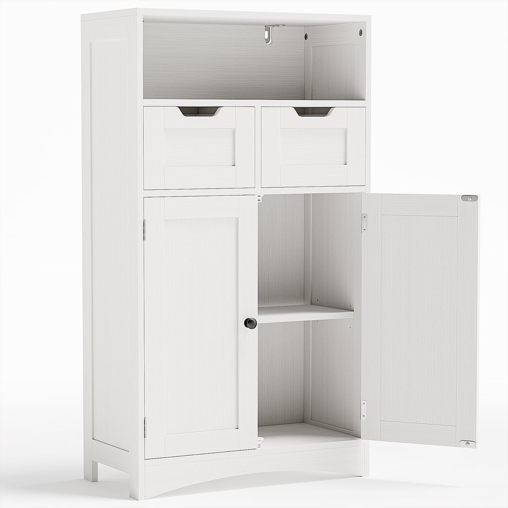 Asofer Bathroom Floor Storage Cabinet with 2 DIY Drawer & Door, Bathroom Cabinet Freestanding, White