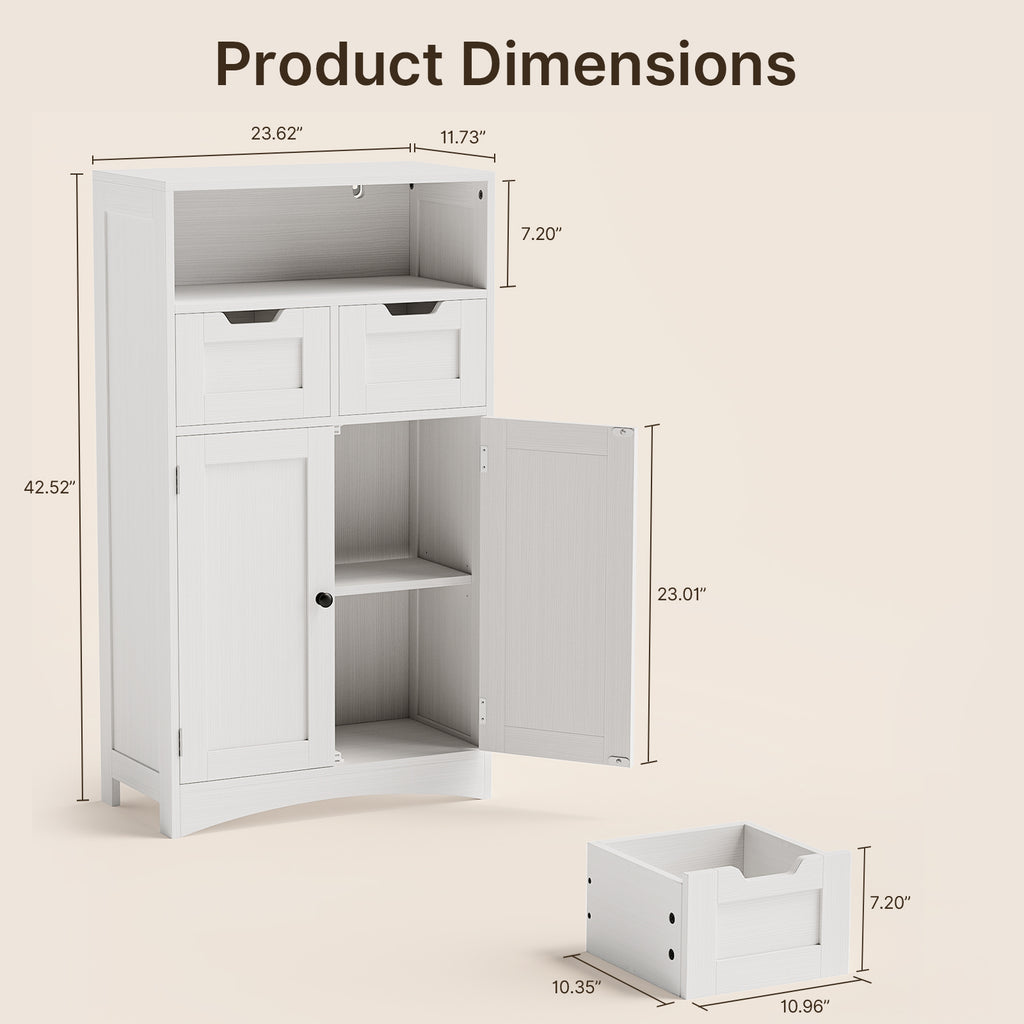 Asofer Bathroom Floor Storage Cabinet with 2 DIY Drawer & Door, Bathroom Cabinet Freestanding - The best housewarming Present!