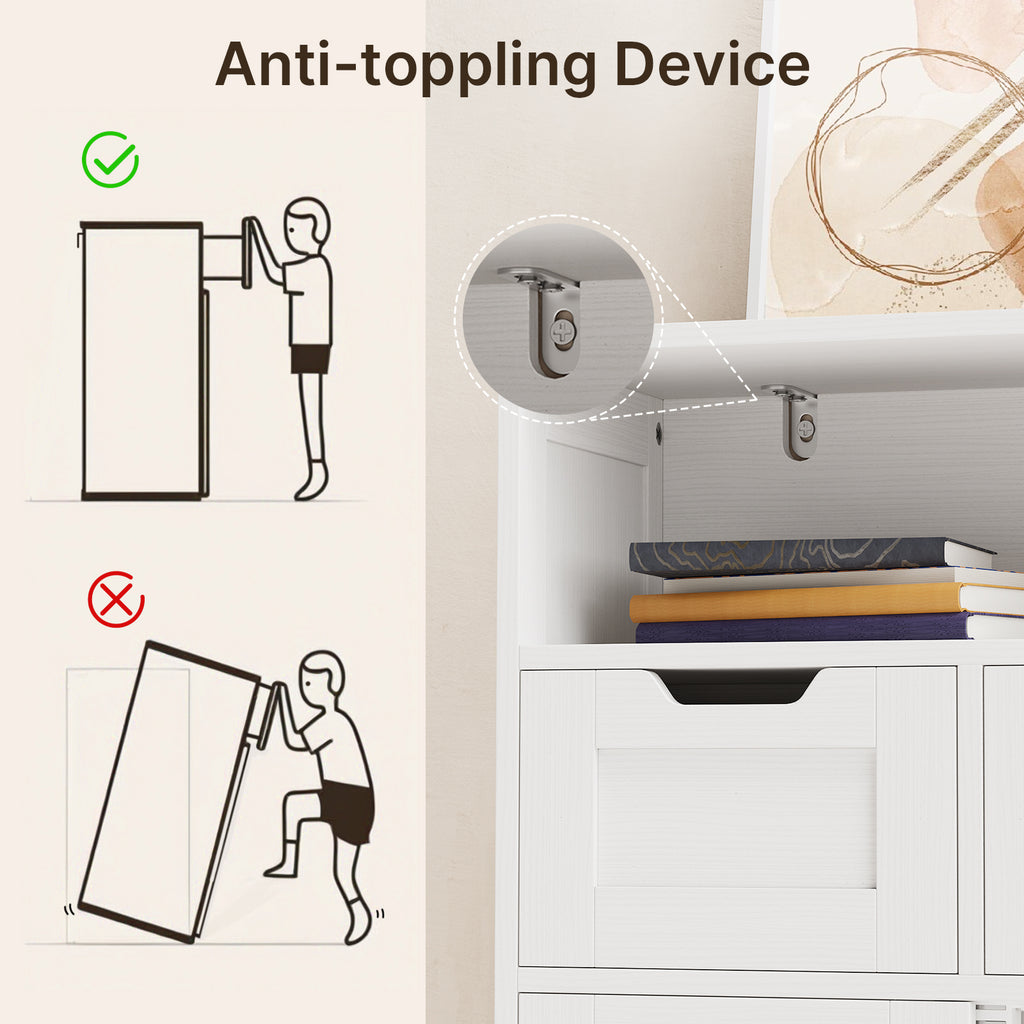 🎁【Sturdy, Stable, and Safe】The bathroom cabinet is made of sturdy MDF, ensuring durability and moisture resistance; the anti-tip kit hidden at the back of the cabinet adds overall stability and safety.