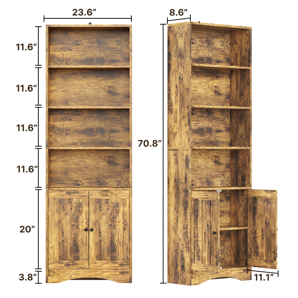 🛒【Space Saving & Large capacity】This 8.6"D x 23.6"W x 70.8"H bookshelf occupies minimal floor space but provides you with a 6-tier vertical storage organizer, featuring an adjustable shelf and two additional doors. You can use it to store a variety of items such as books, garage kits, CDs, potted plants, and more.