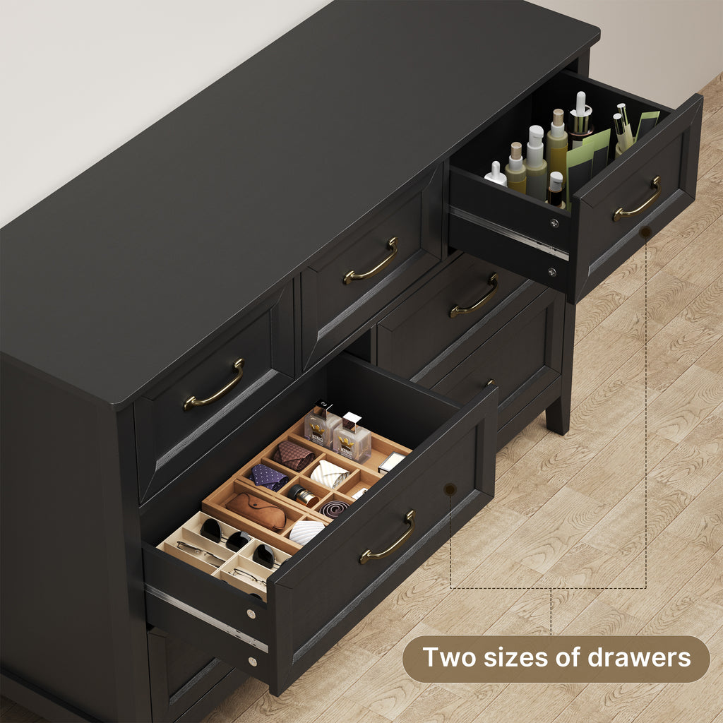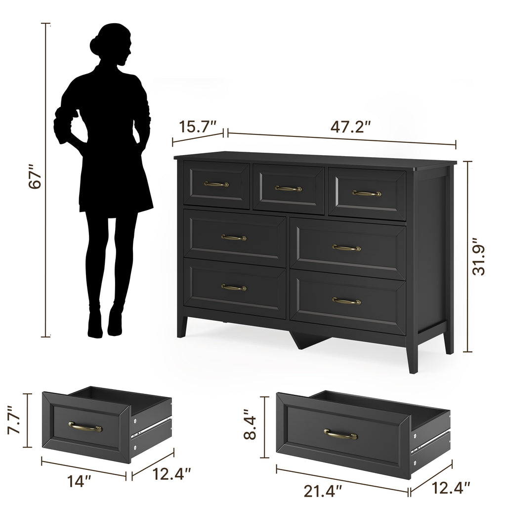 📦 Massive Storage Space: 7 spacious drawers easily organize clothes, accessories, and bedding—banish clutter and keep your bedroom tidy in seconds!🔩 Solid & Durable Build: Made with engineered wood for lasting strength and an easy-to-clean finish. Features reinforced panels + metal runners for smooth gliding, heavy-duty support, and warp-resistant longevity.