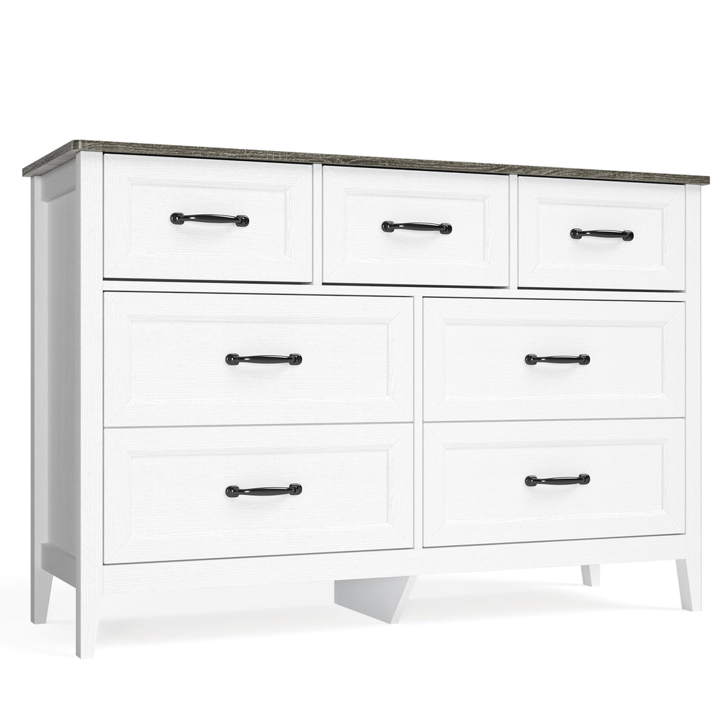 Asofer Dresser for Bedroom, 7-Drawer White Dresser Cabinet with Metal Handle, Gray countertop