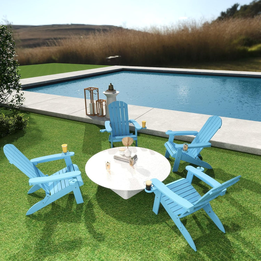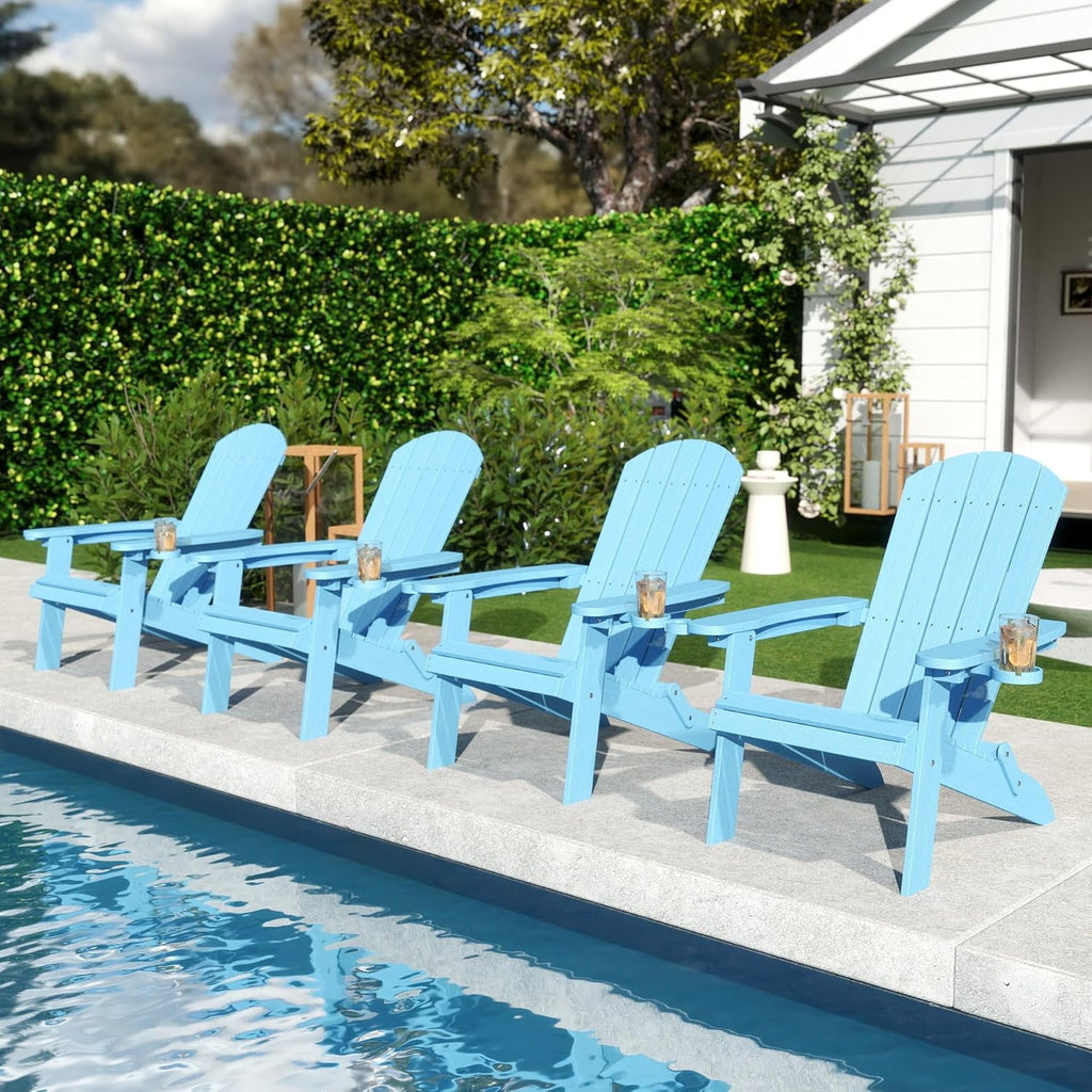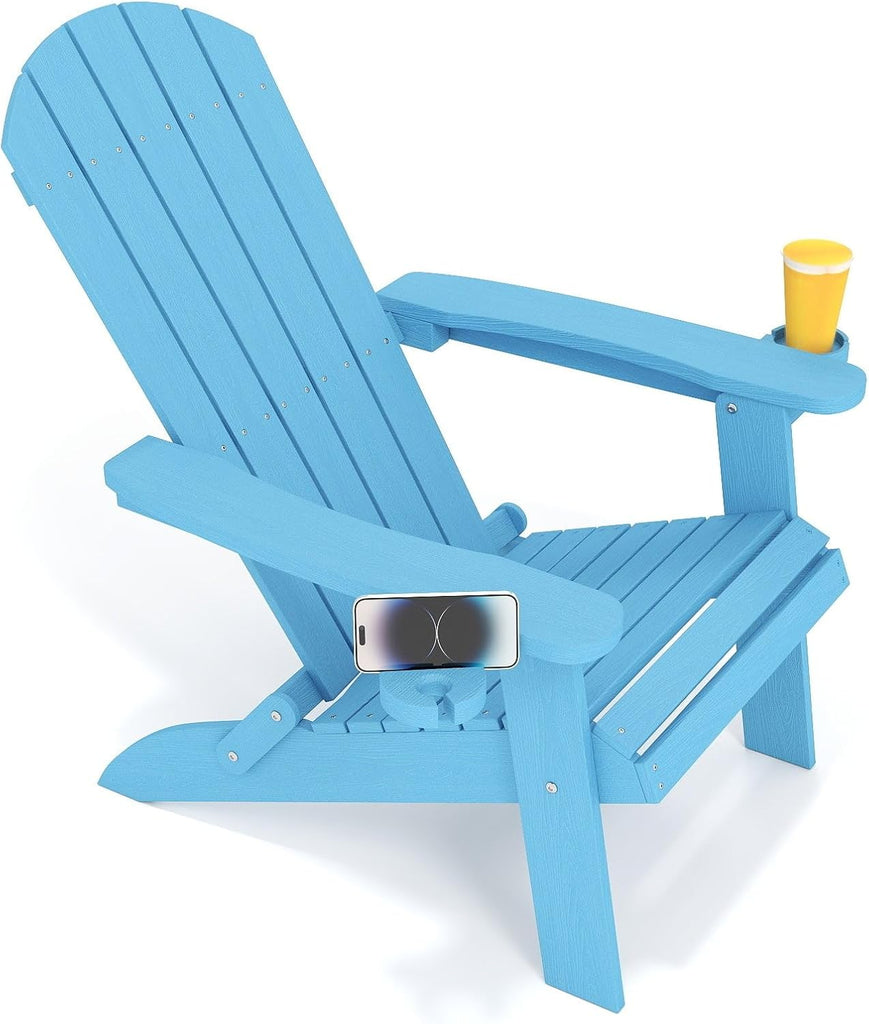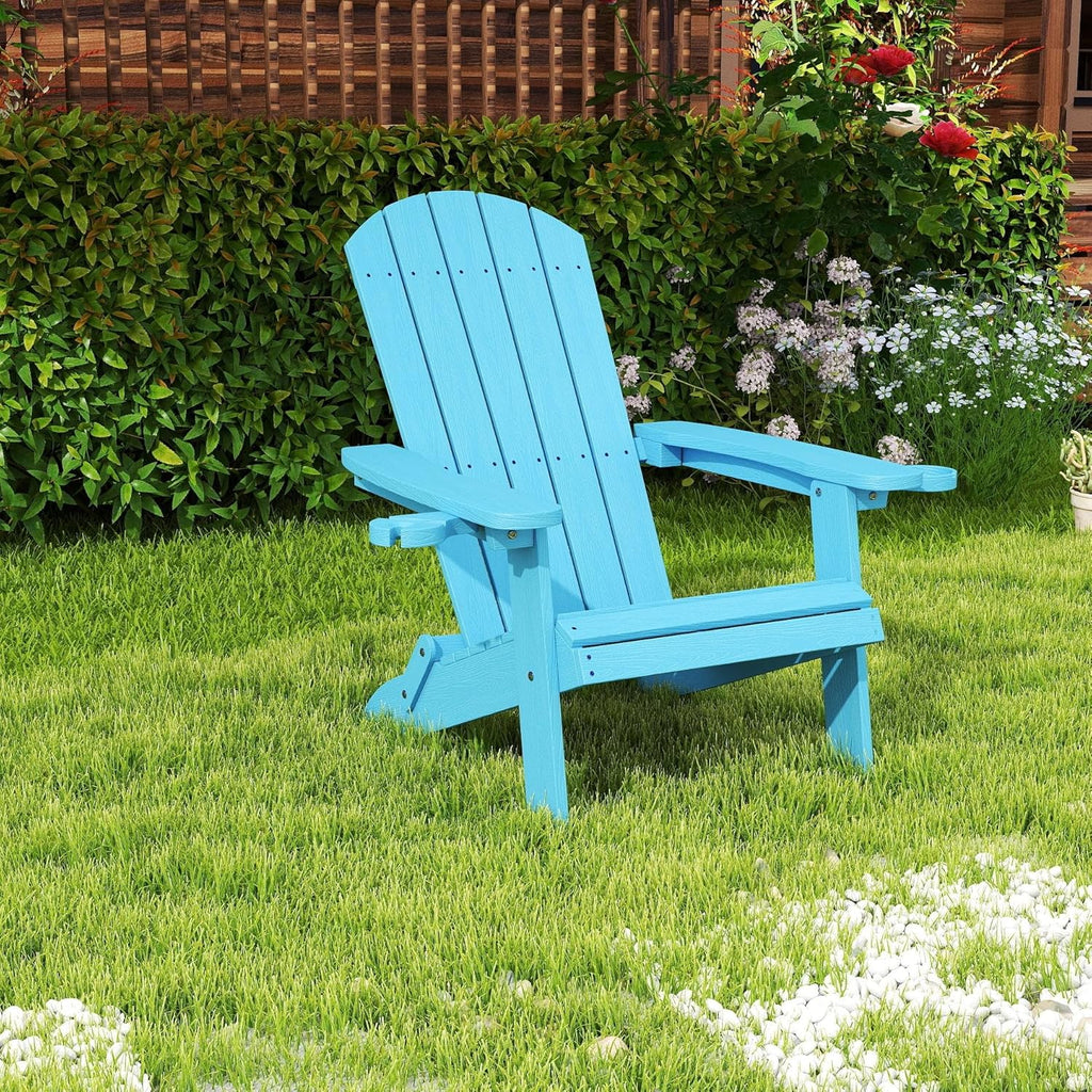 Asofer Folding Adirondack Chair, SGS Tested, Wooden Textured with Cup Holder, Heavy All-Weather HDPE Comfortable Set Poolside Backyard Lawn Coffee, Aruba Blue