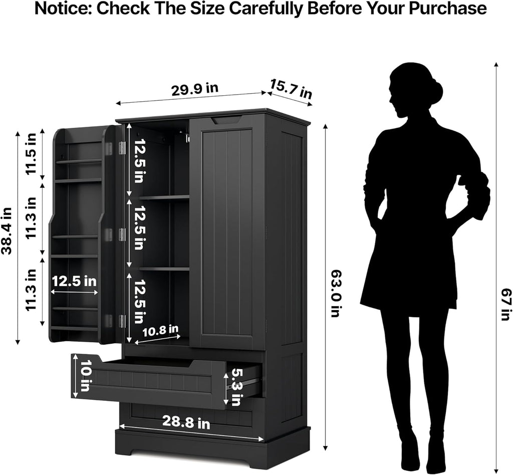 Asofer 63" Kitchen Pantry Storage Cabinet with Drawers Freestanding Cabinets with Doors and Shelves,Black