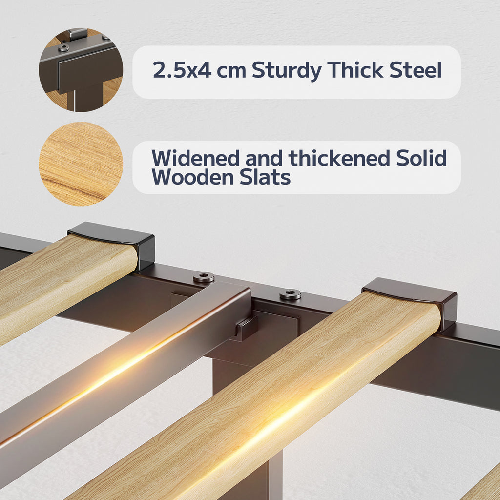 🌙【No Noise】Unlike other metal frame beds, this bed frame has installed noise-reducing foot pads, greatly reducing friction noise between the bed and the ground, creates a quiet and comfortable atmosphere for your sleep.
