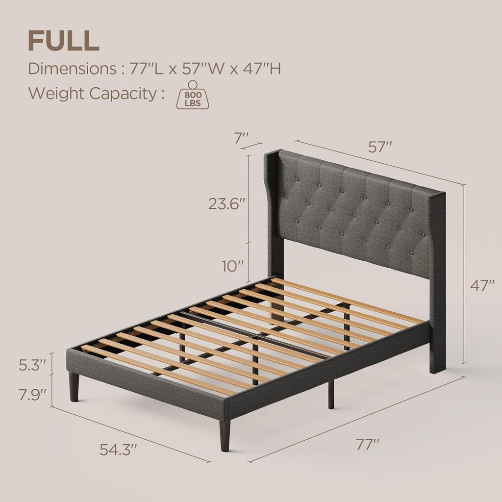 ⛄【Luxurious Upholstered Design】This bed frame is made of high-quality breathable linen fabric, and the wingback headboard is soft to the touch, comfortable and breathable, enhancing a more comfortable leaning experience.