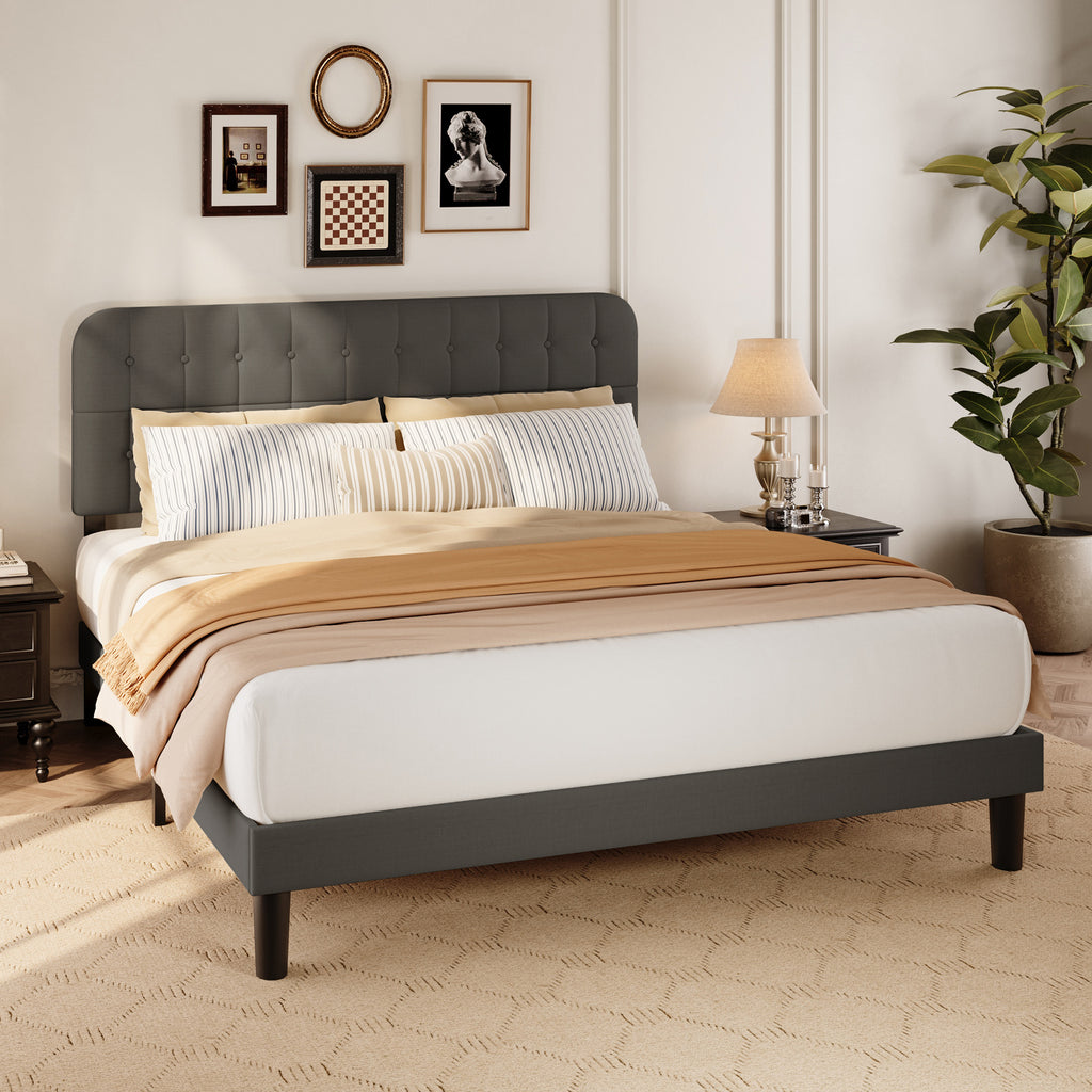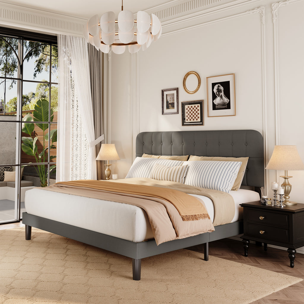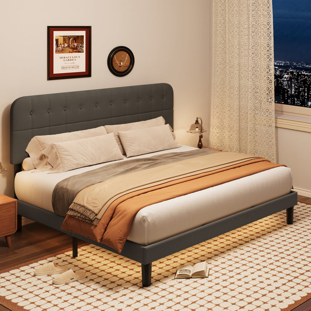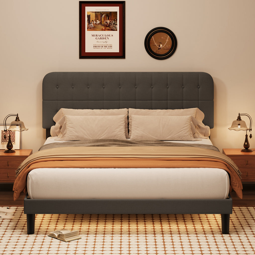 ✨【Perfect Fit for Your Space】Available in three sizes—Full, Queen, and King—this premium platform bed frame comes in two stylish color options, Grey and Beige, and complements your modern decor effortlessly.