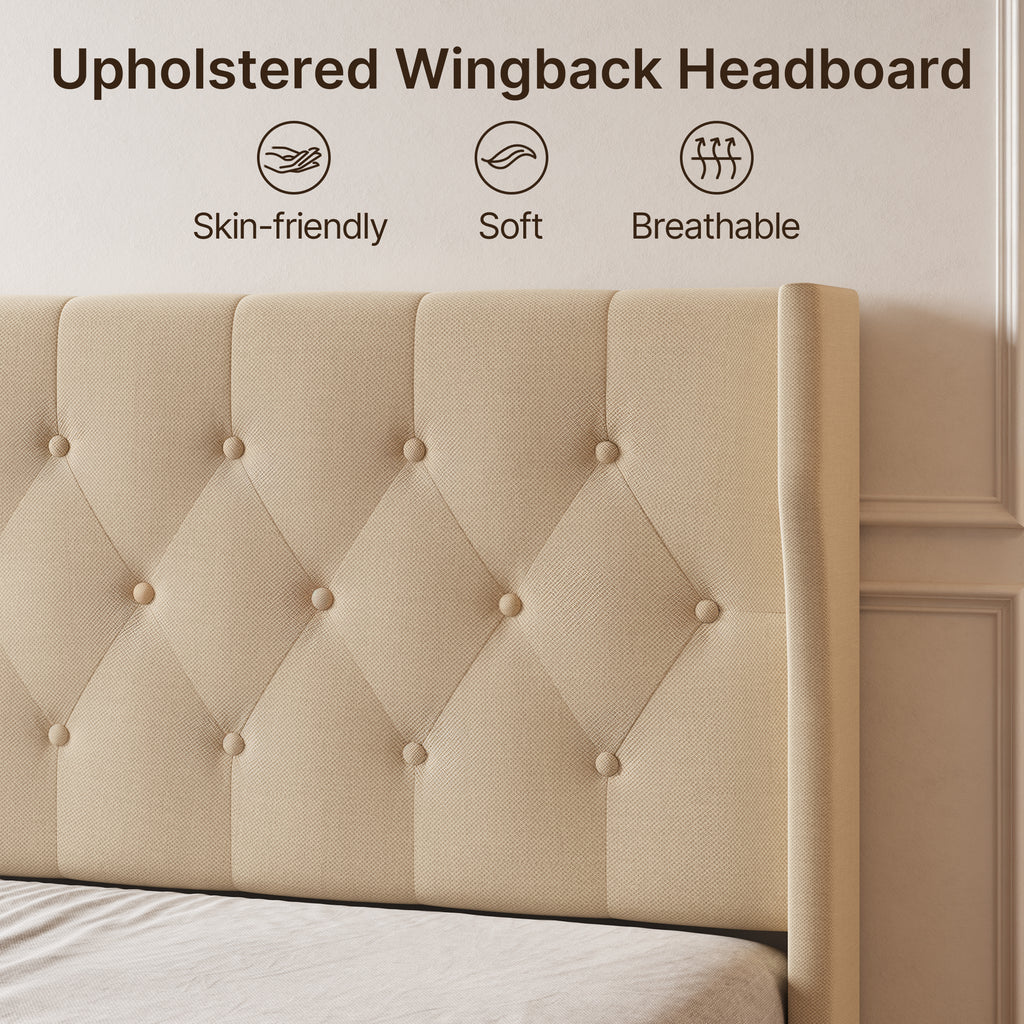 Comfortable Headboard: Upholstered in soft, skin-friendly linen fabric for comfortable sitting and relaxing.