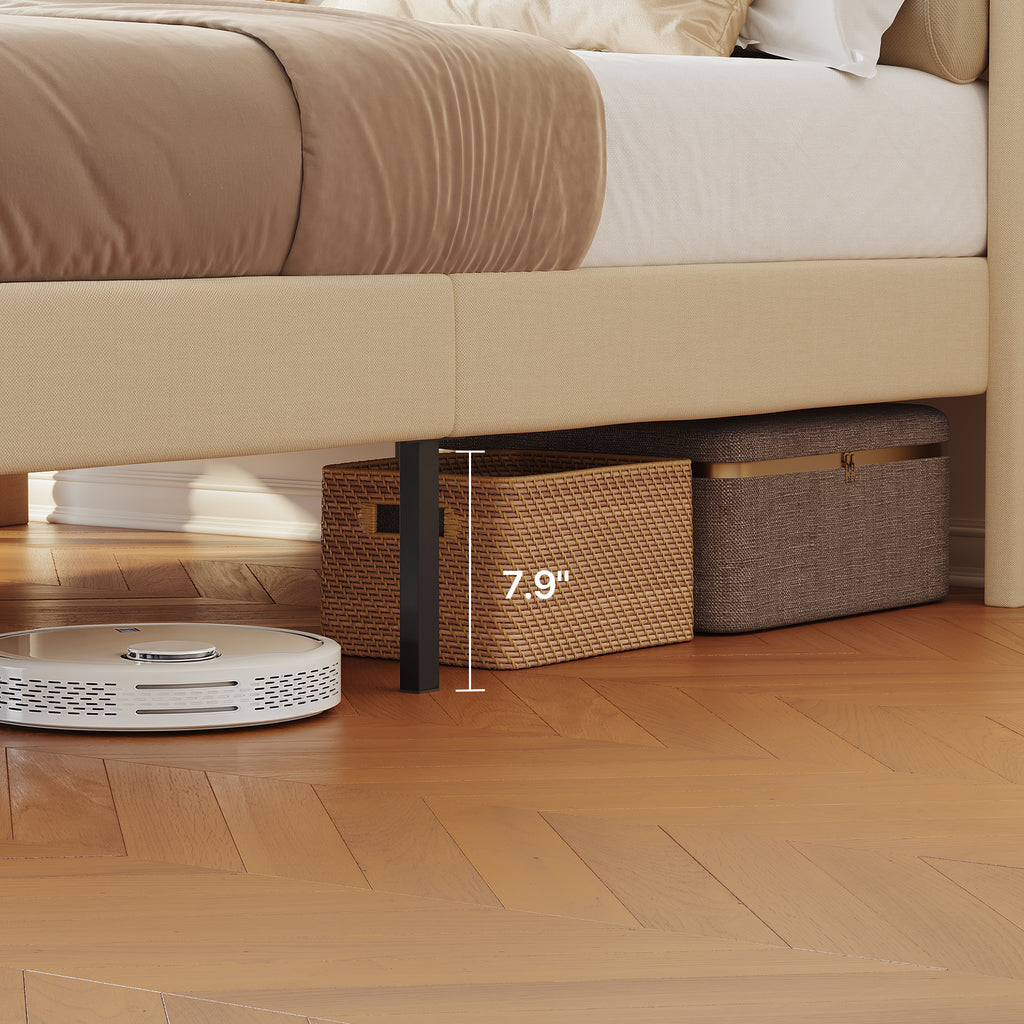 Under-Bed Storage: 7.9” of clearance offers valuable space for storage bins or lets a robot vacuum clean underneath easily. No box spring needed!