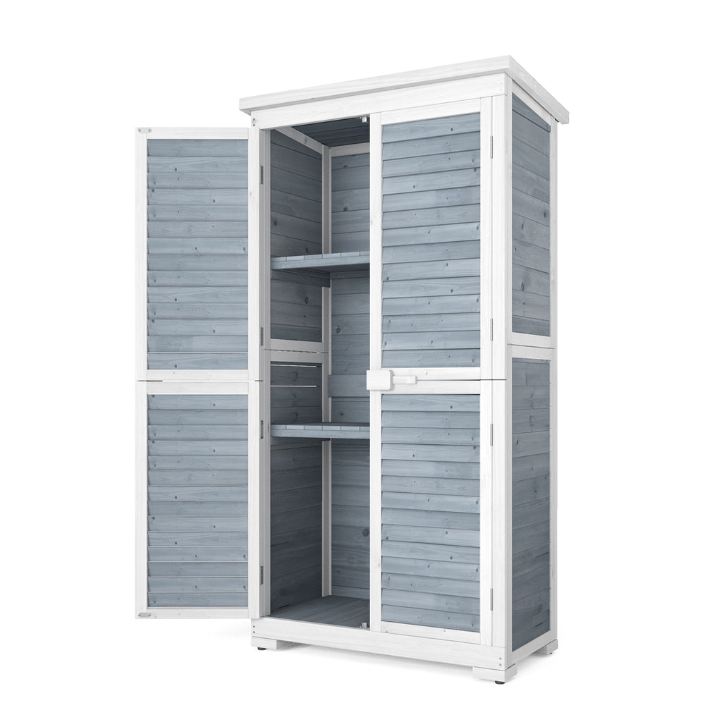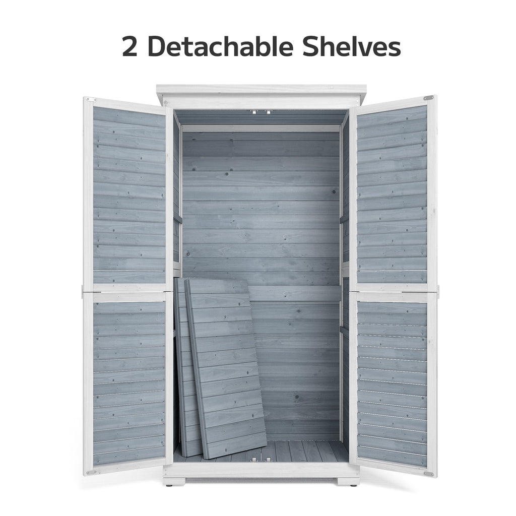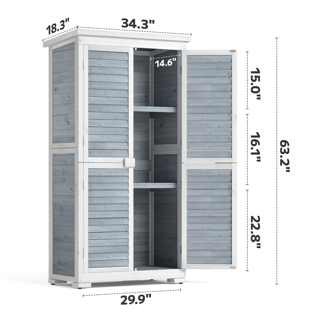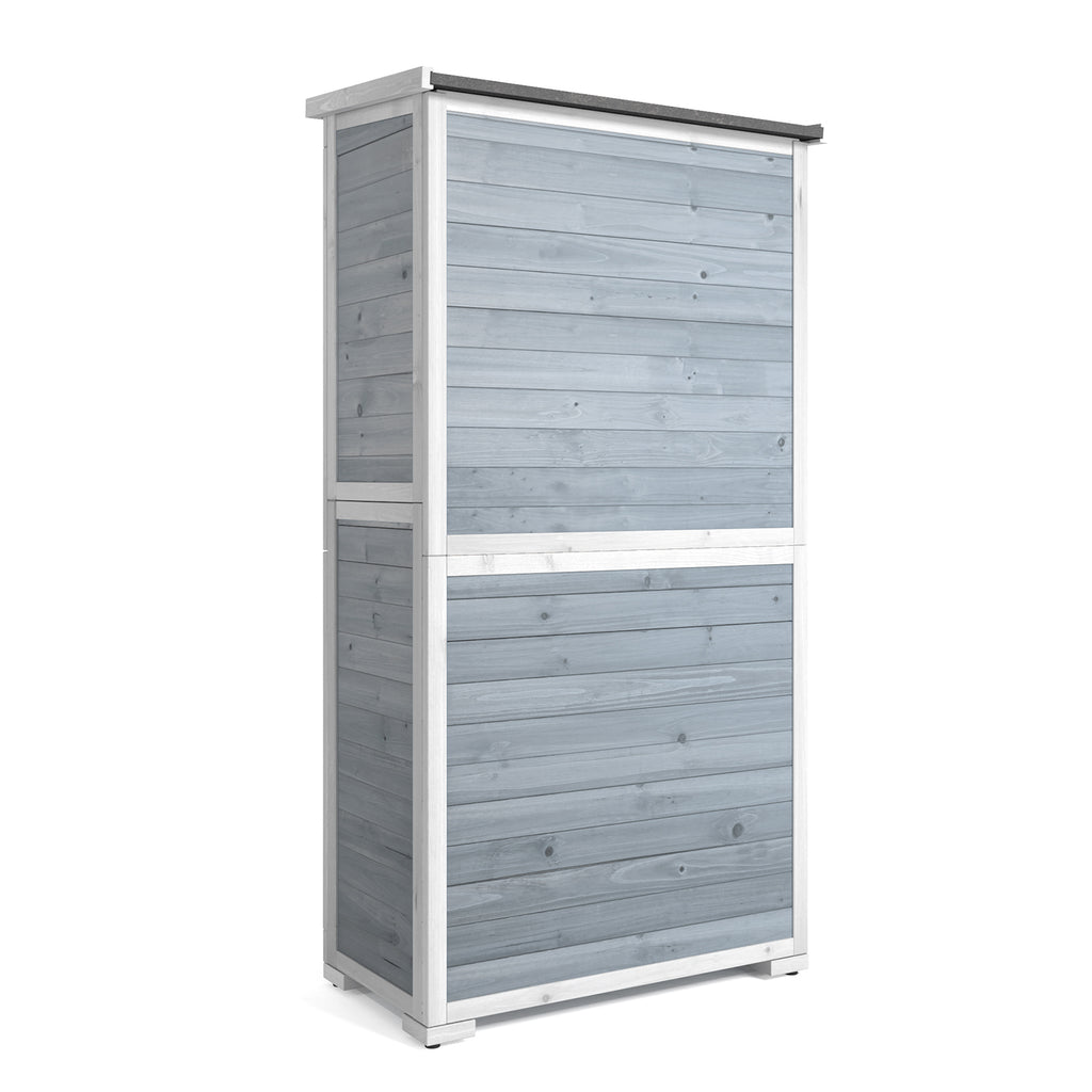 Asofer Outdoor Storage Cabinet, Garden Tool Shed with Removable Shelves & Asphalt Roof for Lawn, Patio, Gray