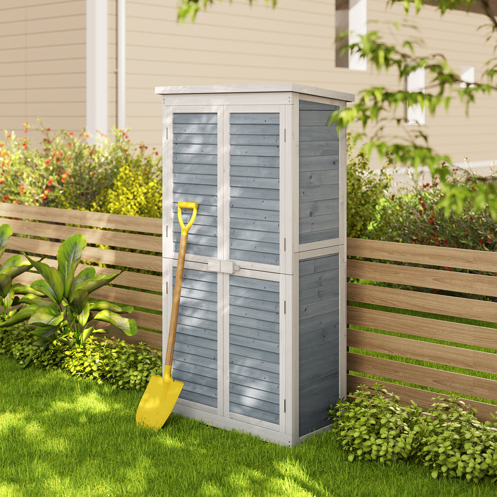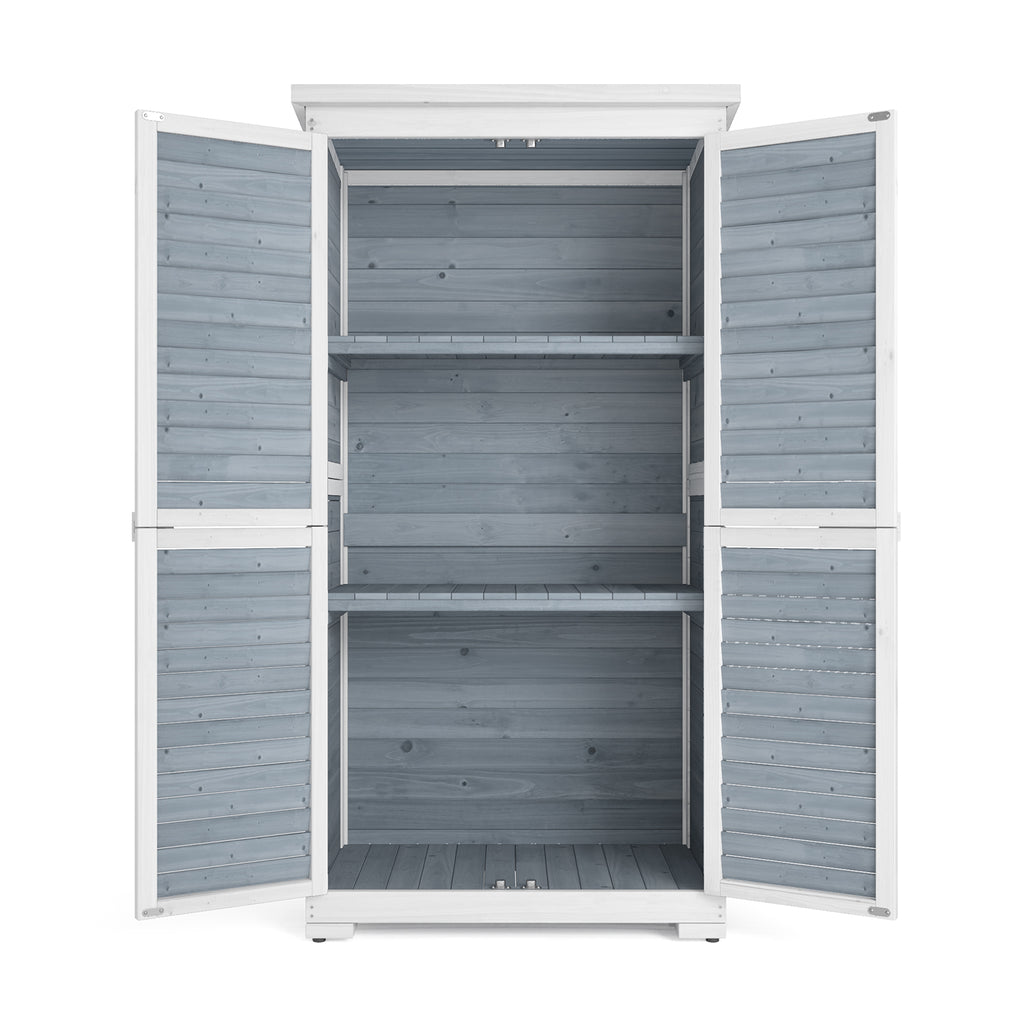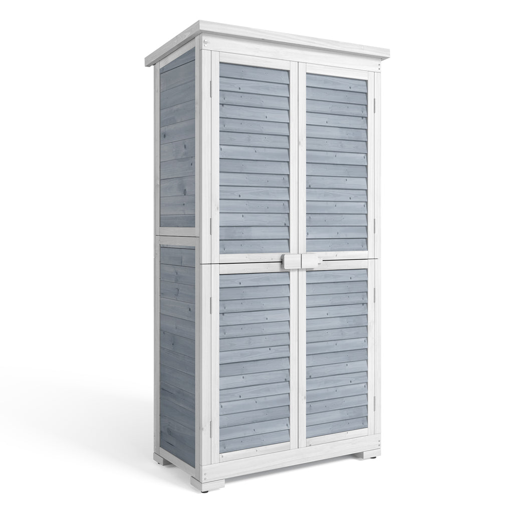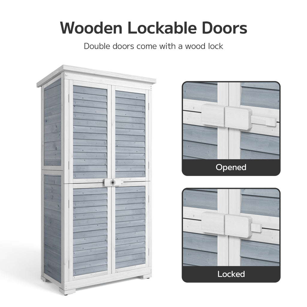 Asofer Outdoor Storage Cabinet, Garden Tool Shed with Removable Shelves & Asphalt Roof for Lawn, Patio, Gray