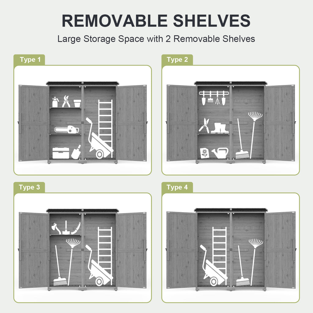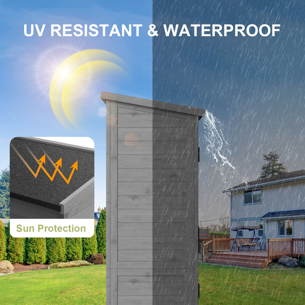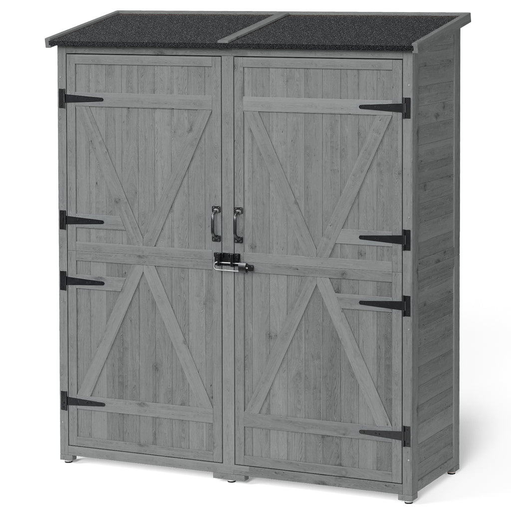 Asofer Outdoor Storage Cabinet with Floor, Waterproof Roof, Double Lockable Doors Garden Shed with 2 Removable Shelves, Gray