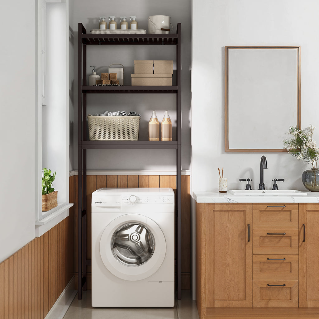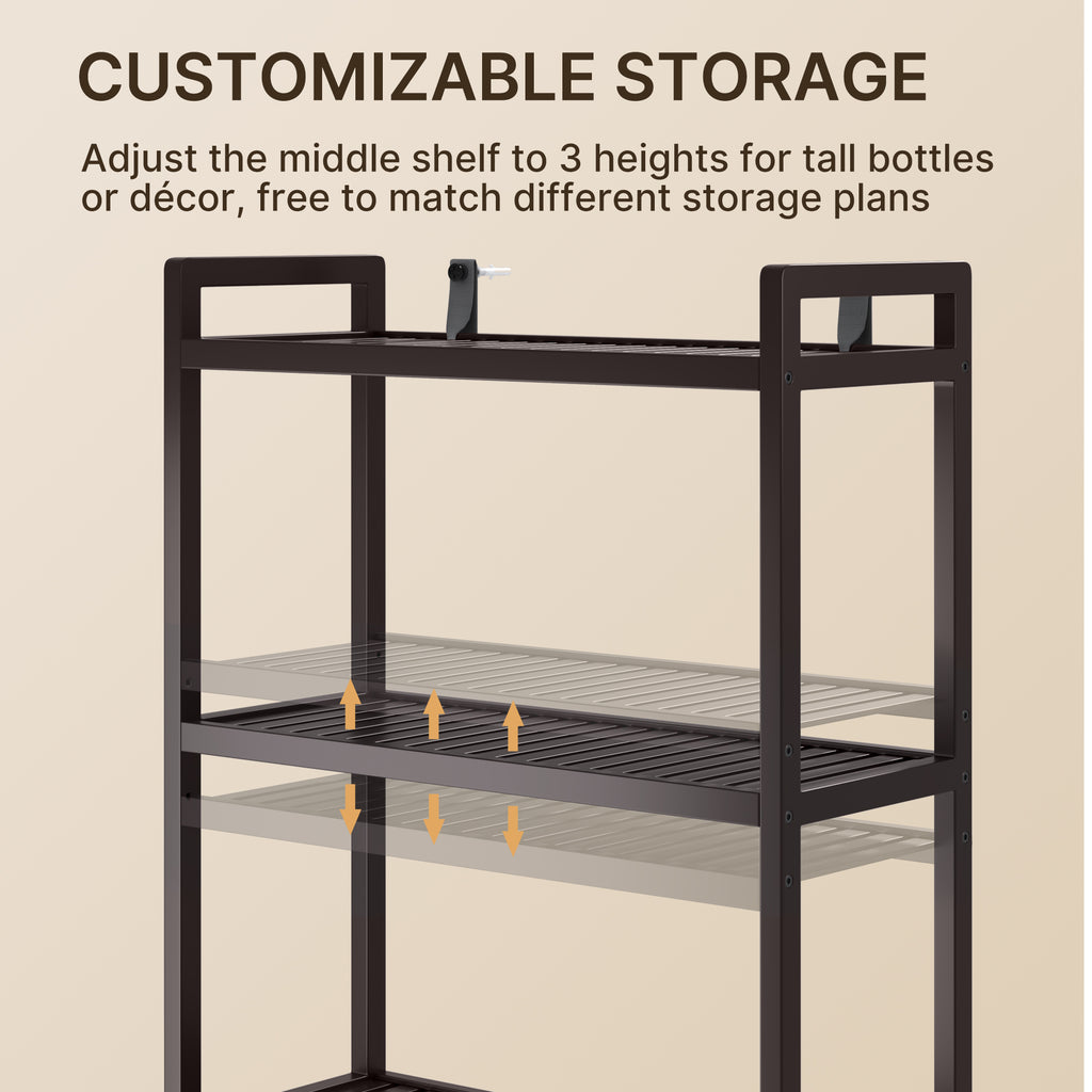 Asofer Over The Toilet Storage, 3-Tier Adjustable Bamboo Above Toilet Shelf, Dark Brown