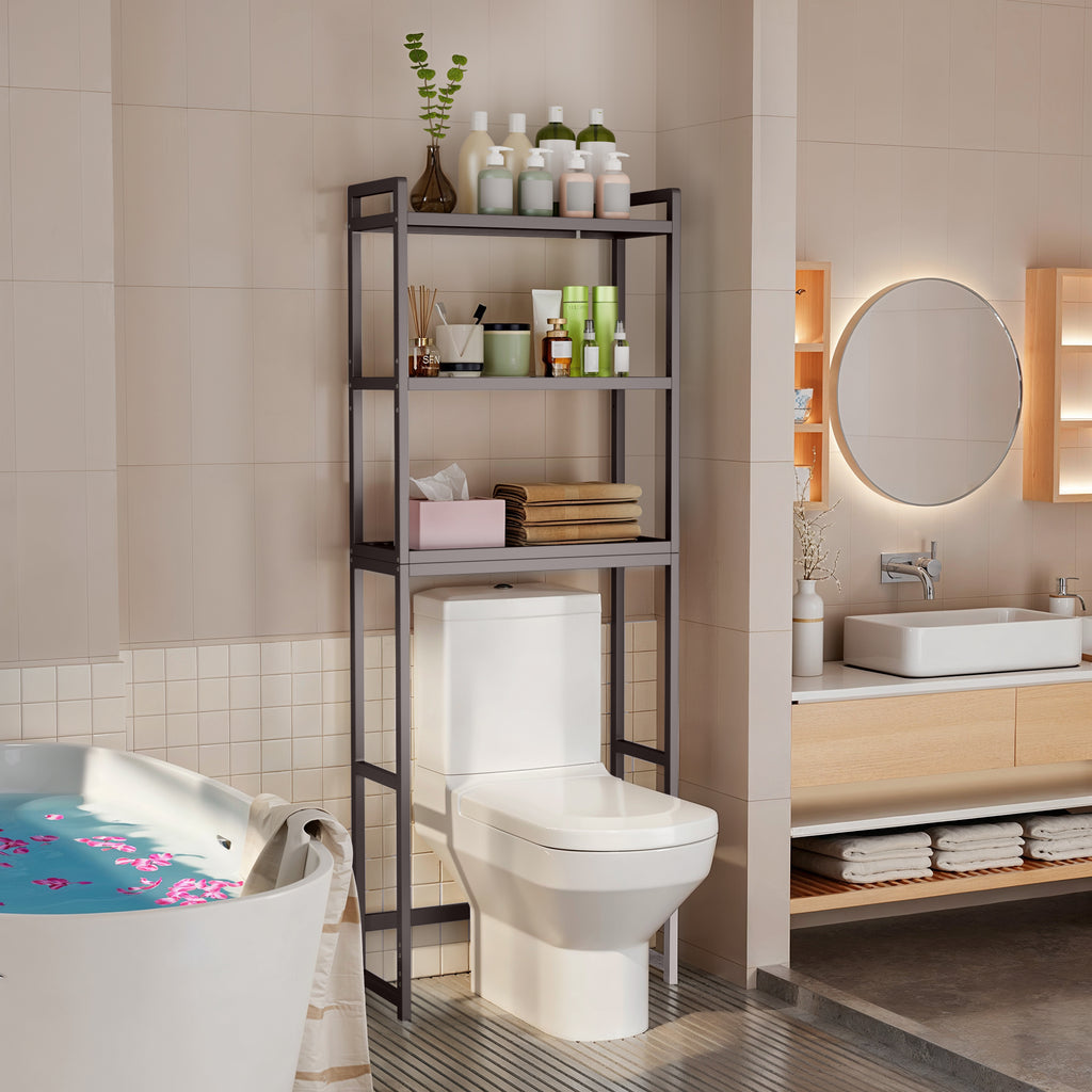 <p>🚿【Maximize Space】This over-the-toilet storage rack, standing at 66.9" high, features 3 shelves (24.8"×10.2") perfect for categorizing clutter and ideal for storing towels, toiletries, or decorative plants.</p>