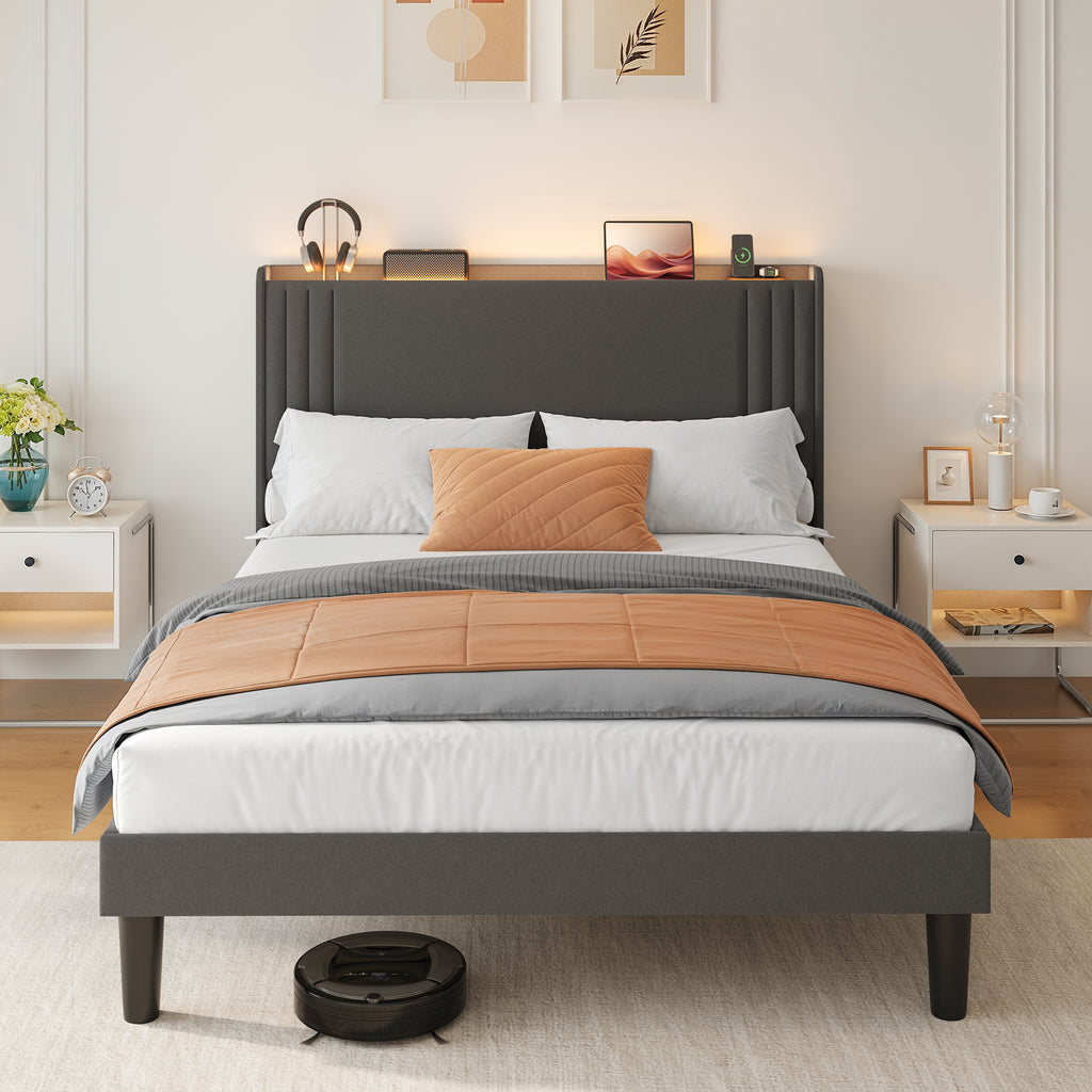 🏡【Convenience Hub】Headboard integrates 2 AC outlets + 2 USB ports for modern lifestyles. Charge phones, tablets, or devices without hunting for wall sockets.