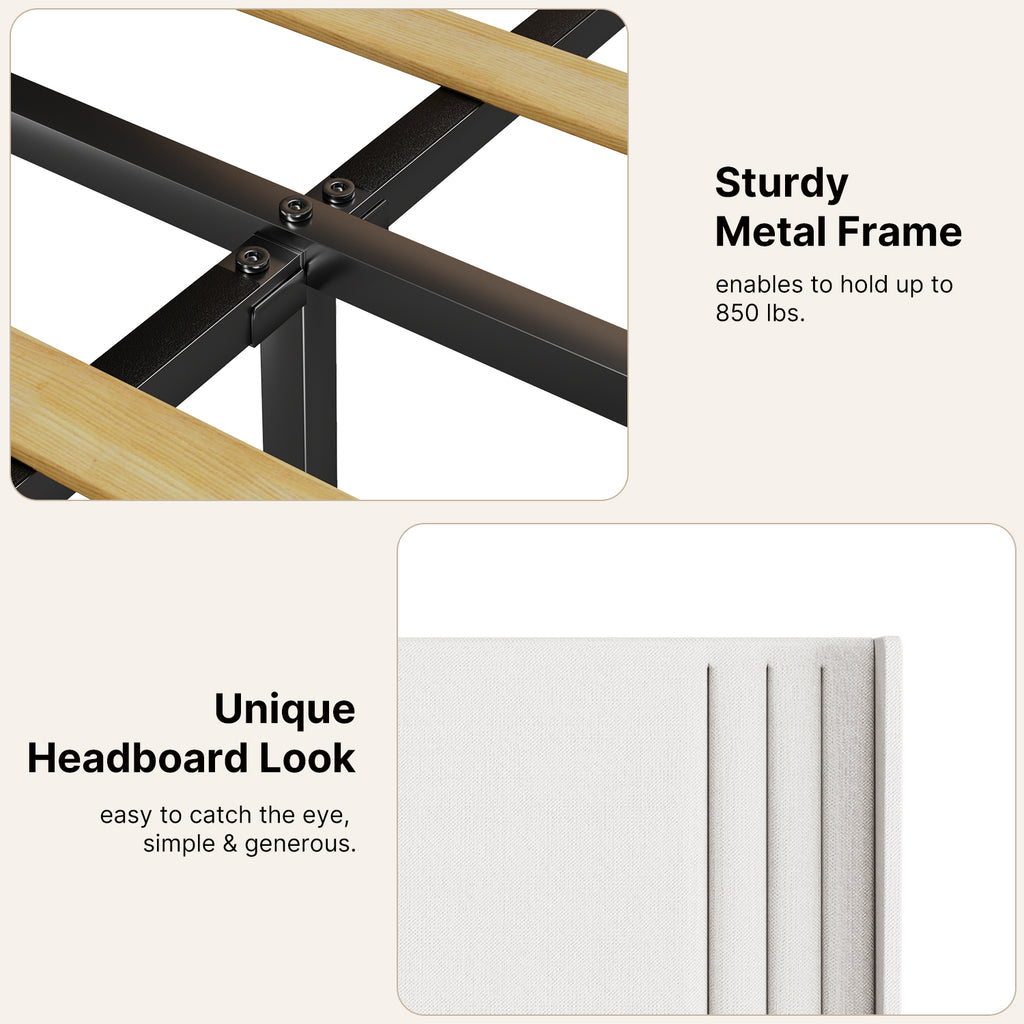 Asofer Queen Bed Frame with Wingback Headboard, Upholstered Platform Bed, Wooden Slats, Noise-Free