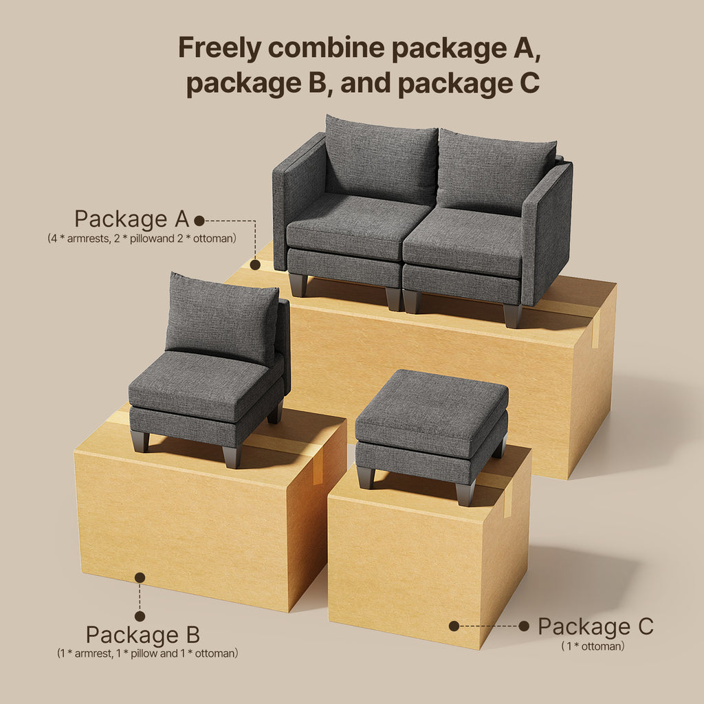🤍【Easy to Assemble】Our package comes with clear instructions and the necessary assembly tools, and each part is labeled with a number. For the quality and safety of the sofa, it is divided into three packages, which may be delivered at different times. Please pay attention to the logistics information.