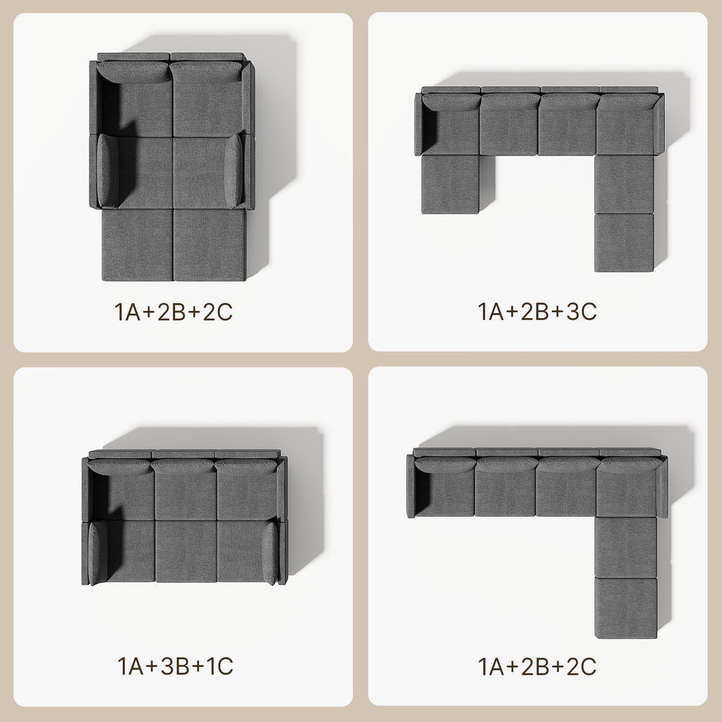 🤍【Comfortable Cushion】The cushions of the modular sofa are made of 10.2-inch thick high-density foam that provides soft and comfortable support. To ensure the quality of the cushion and the comfort of the fabric, it is vacuum packaged. After assembly, the cushion needs time to become soft, and you can use a patting motion to help it expand.