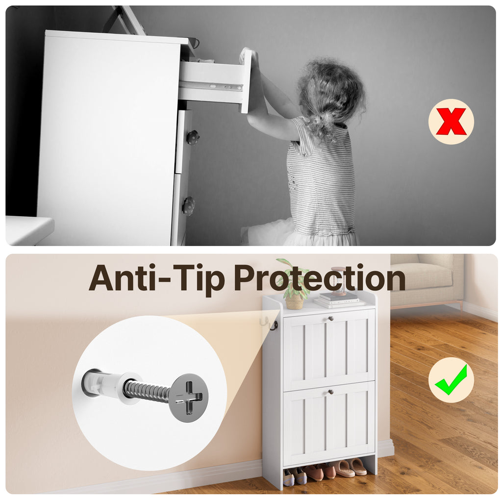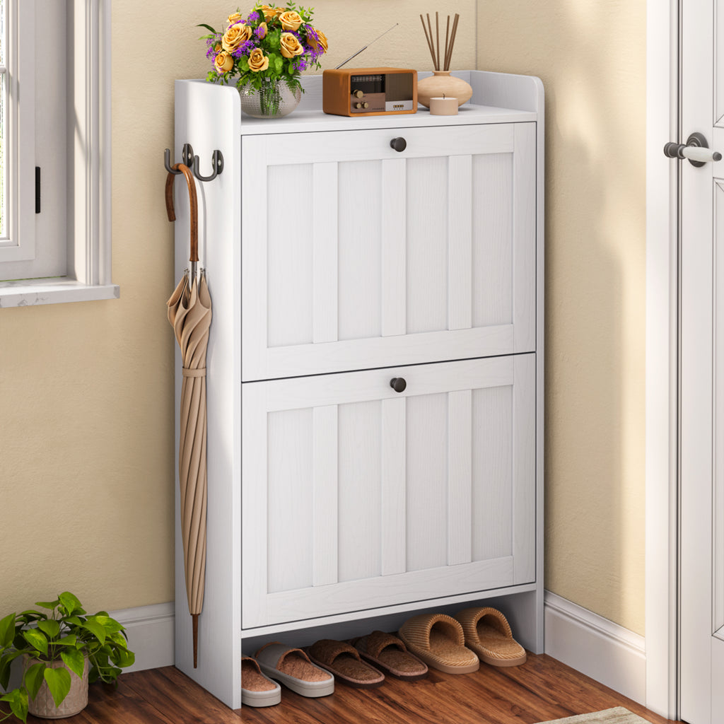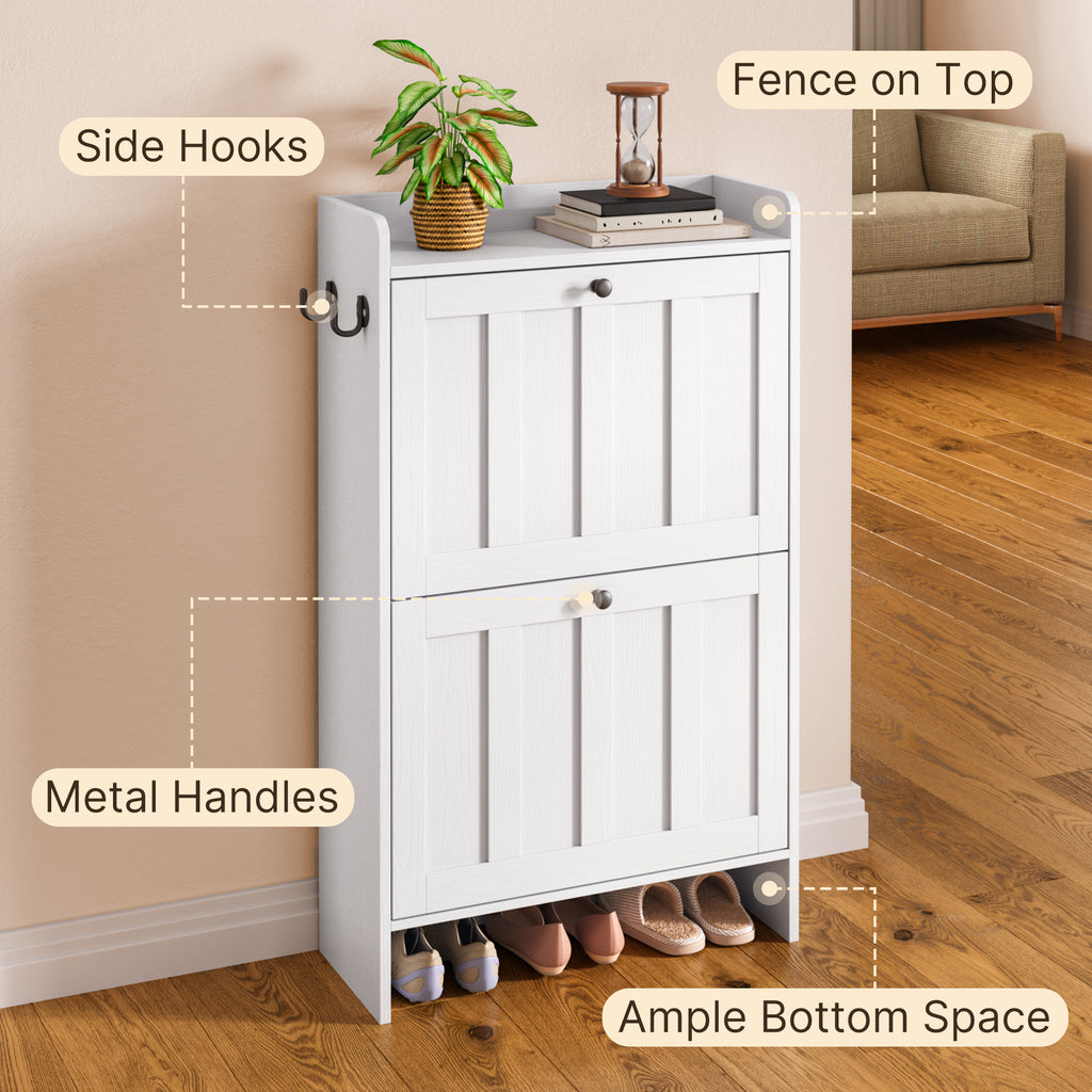 Asofer Shoe Cabinet with 2 Flip-Down Drawers & Open Storage – Freestanding Narrow Entryway for Hallway, Closet, Dorm, White