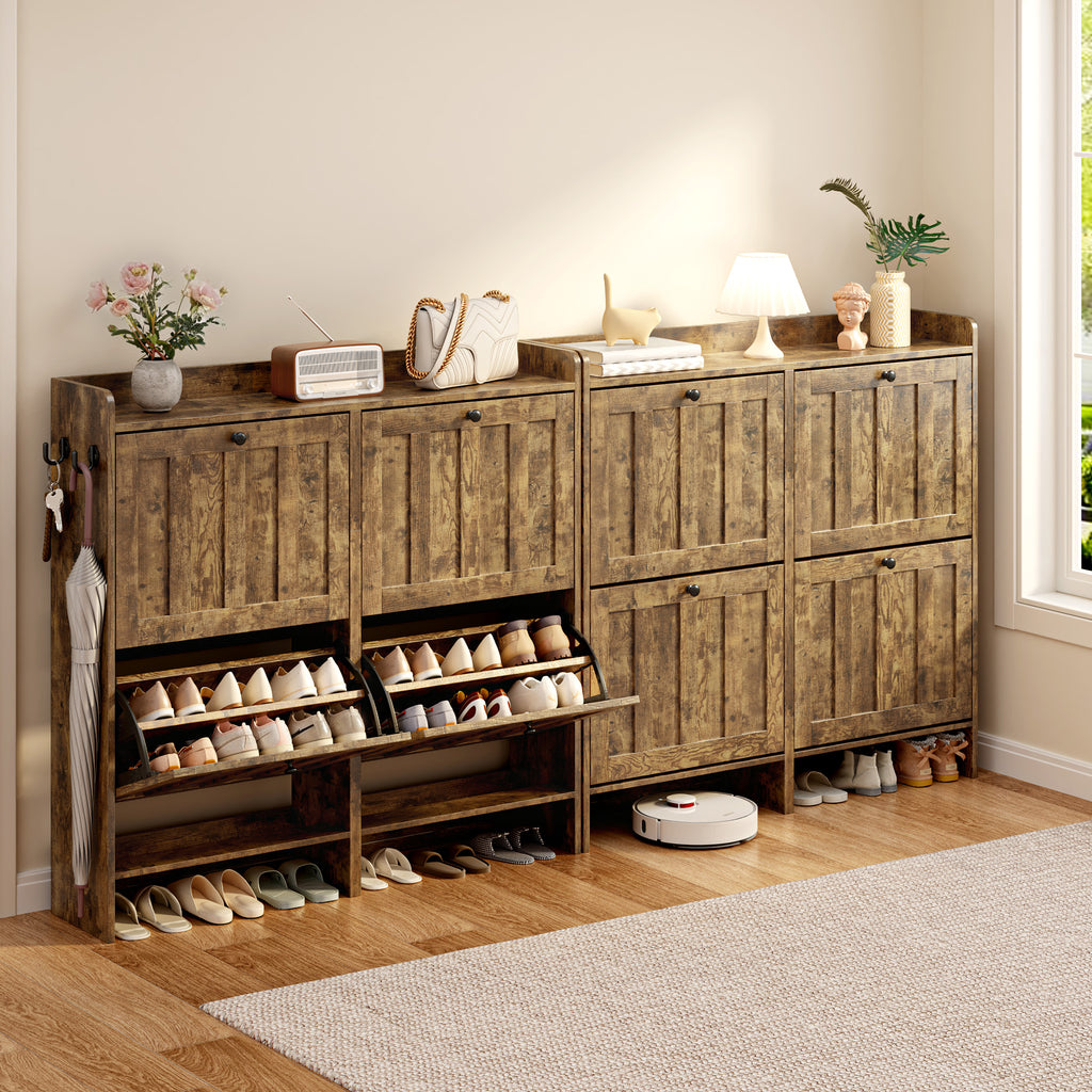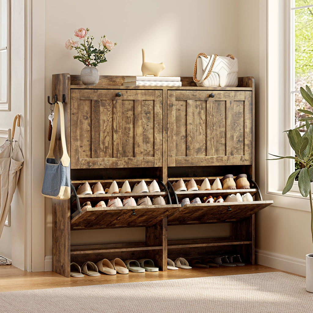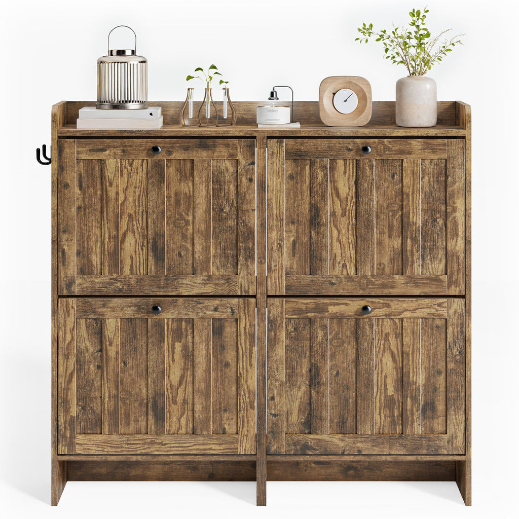 Asofer Shoe Cabinet with 4 Flip-Down Drawers & Open Storage – Freestanding Narrow Entryway for Hallway, Closet, Dorm, Retro