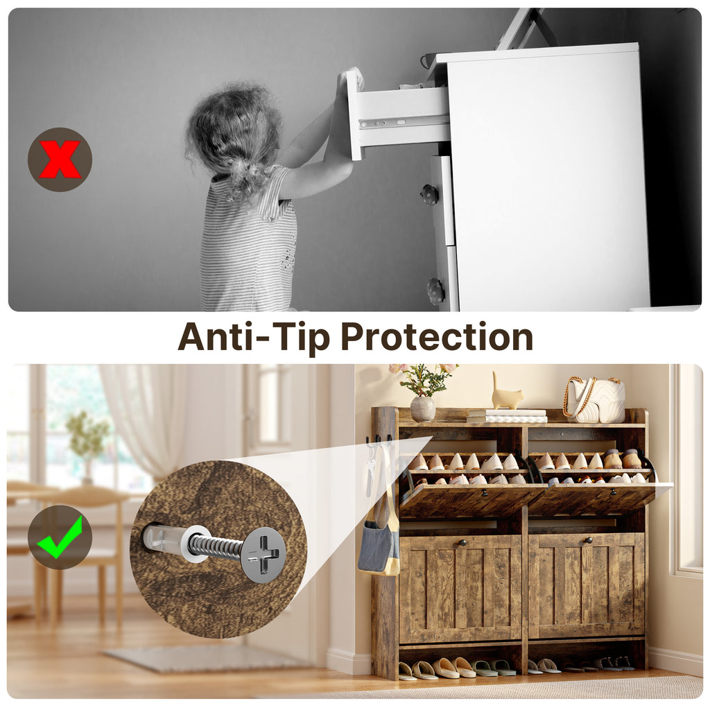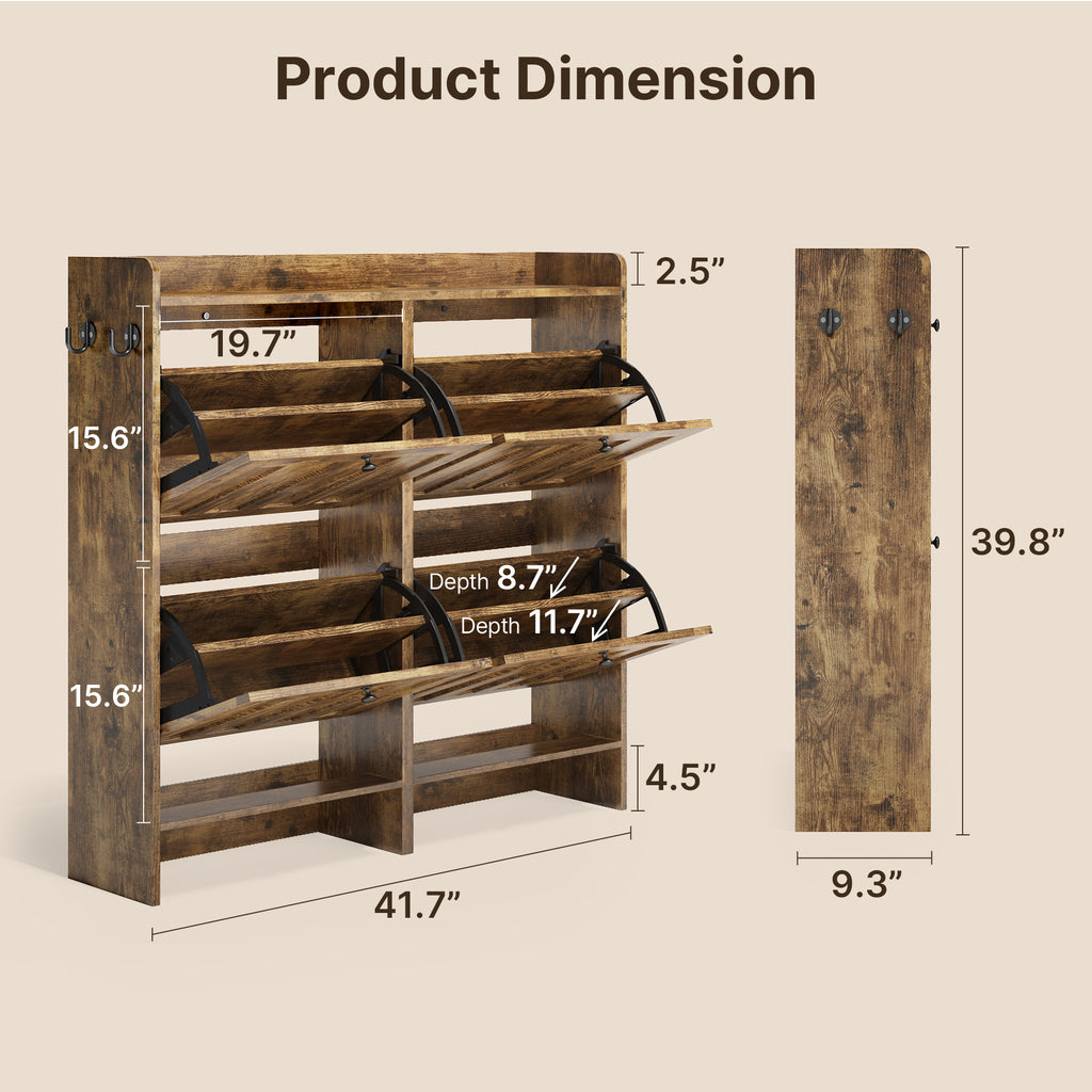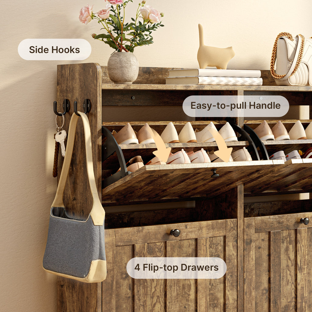 <h3>✴Asofer Shoe Cabinet with 4 Flip-Down Drawers &amp; Open Storage</h3>