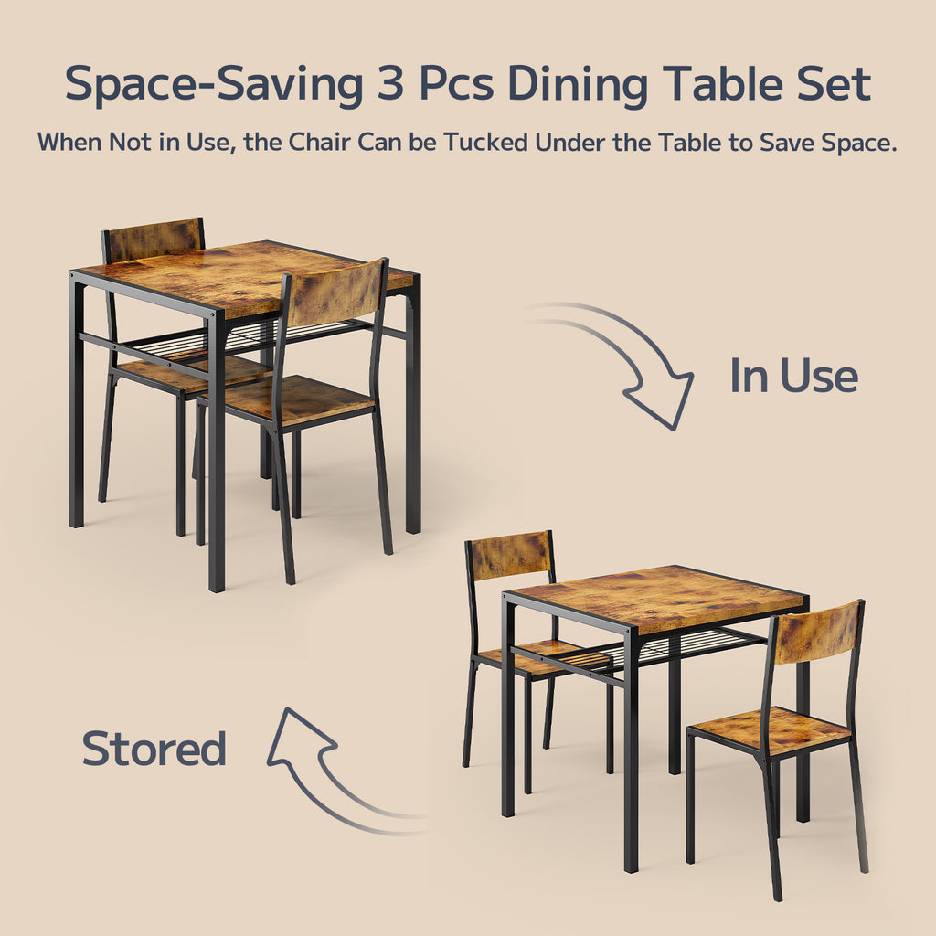 Asofer Wood Dining Table Set, Kitchen Table Chairs Set of 3, Suitable for Couples, Small Space, Retro