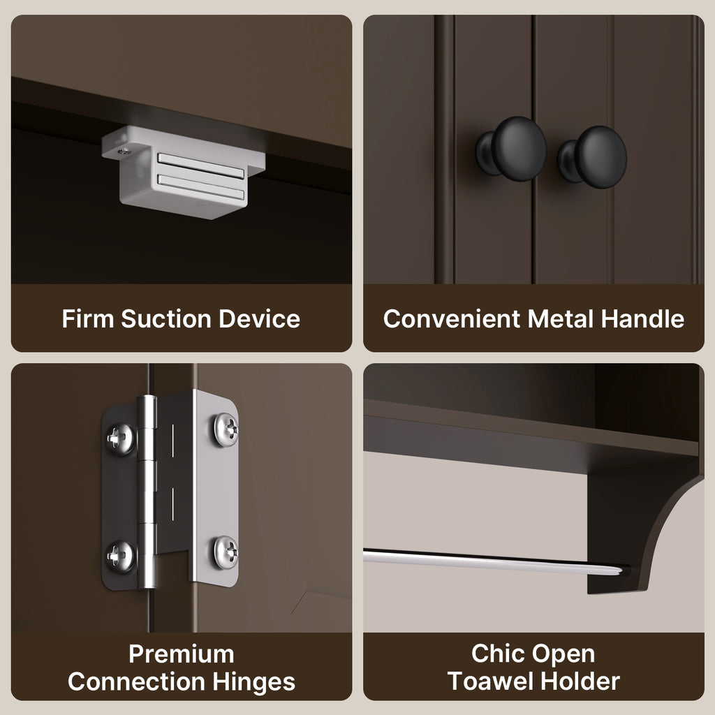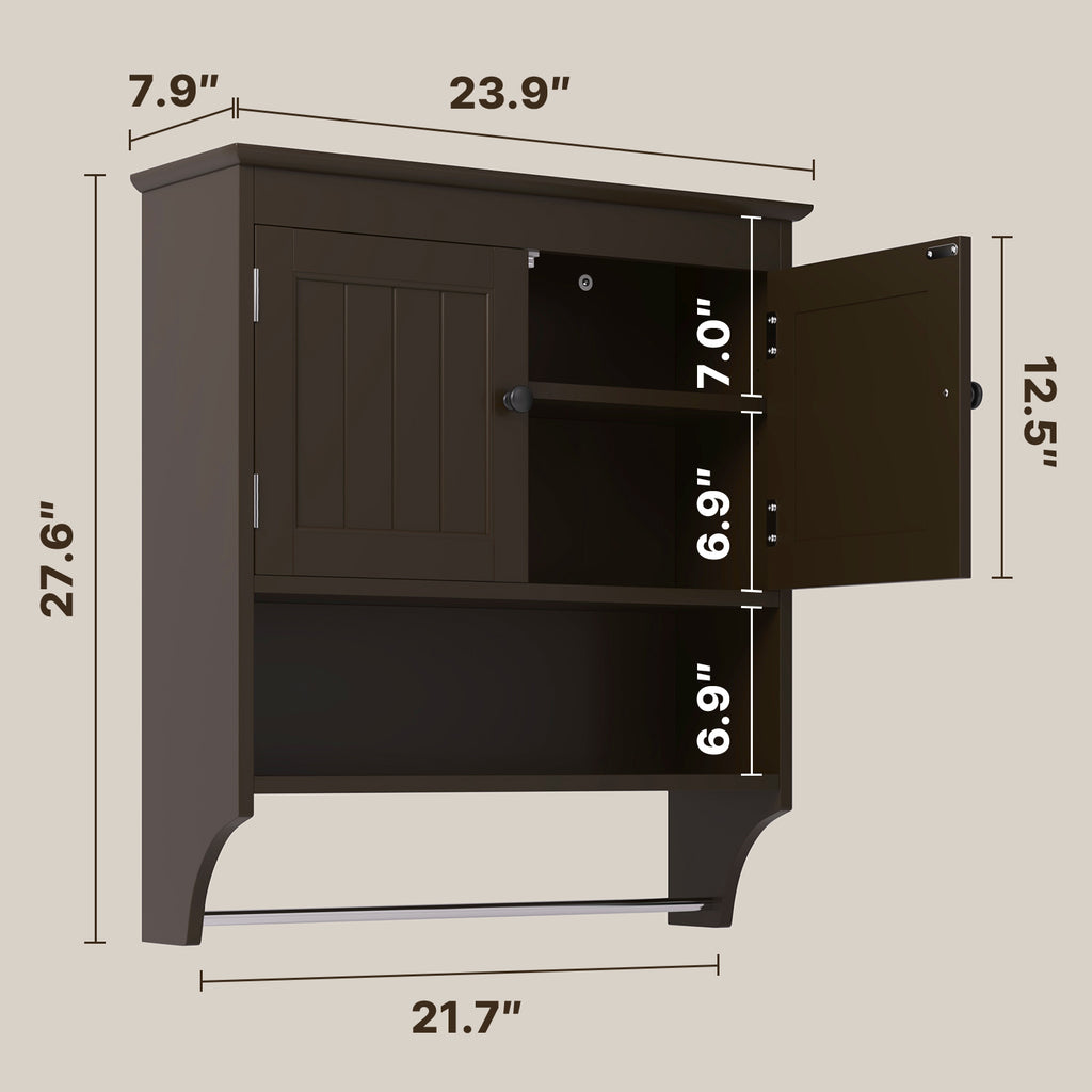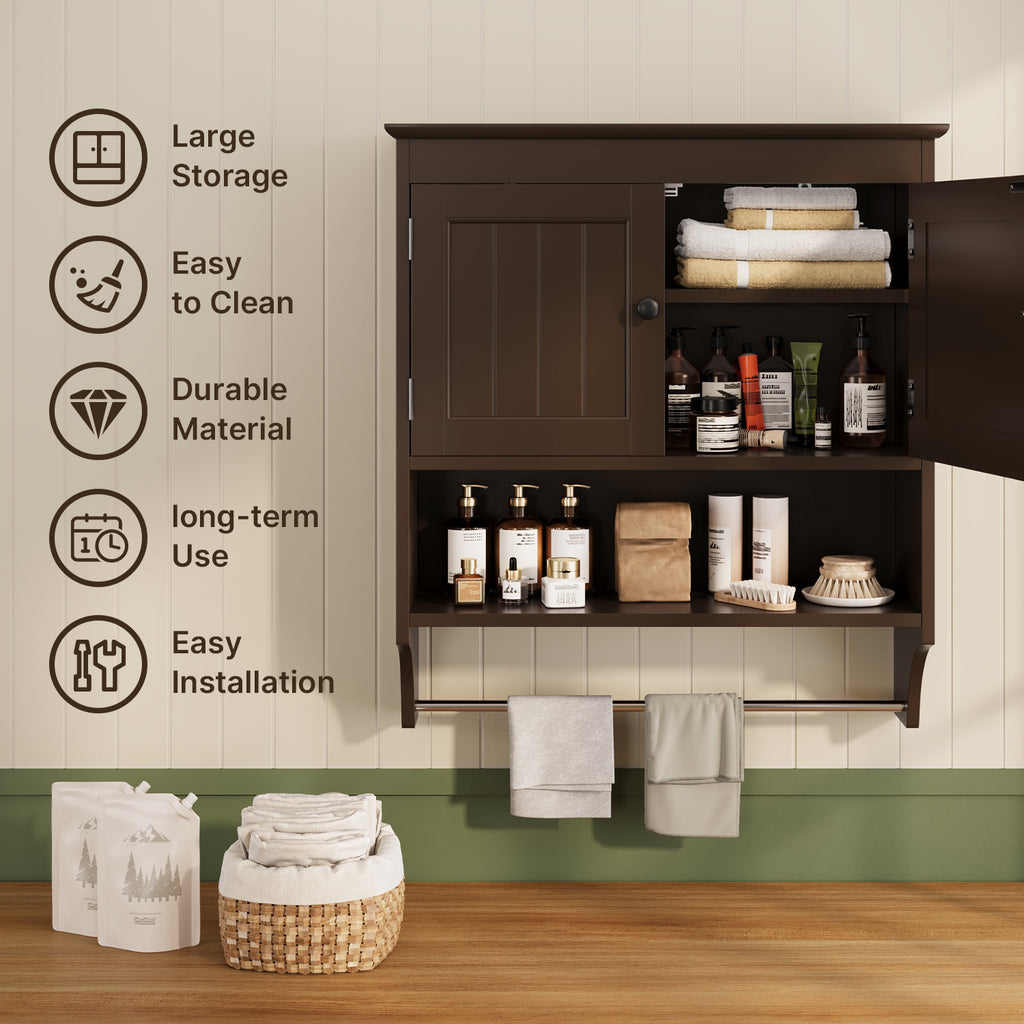 Bathroom Cabinet Wall Mounted with Doors and Towel Bar, Wood Hanging Cabinet, Wall Cabinets Over The Toilet, Bathroom Wall Cabinet - Dark Brown