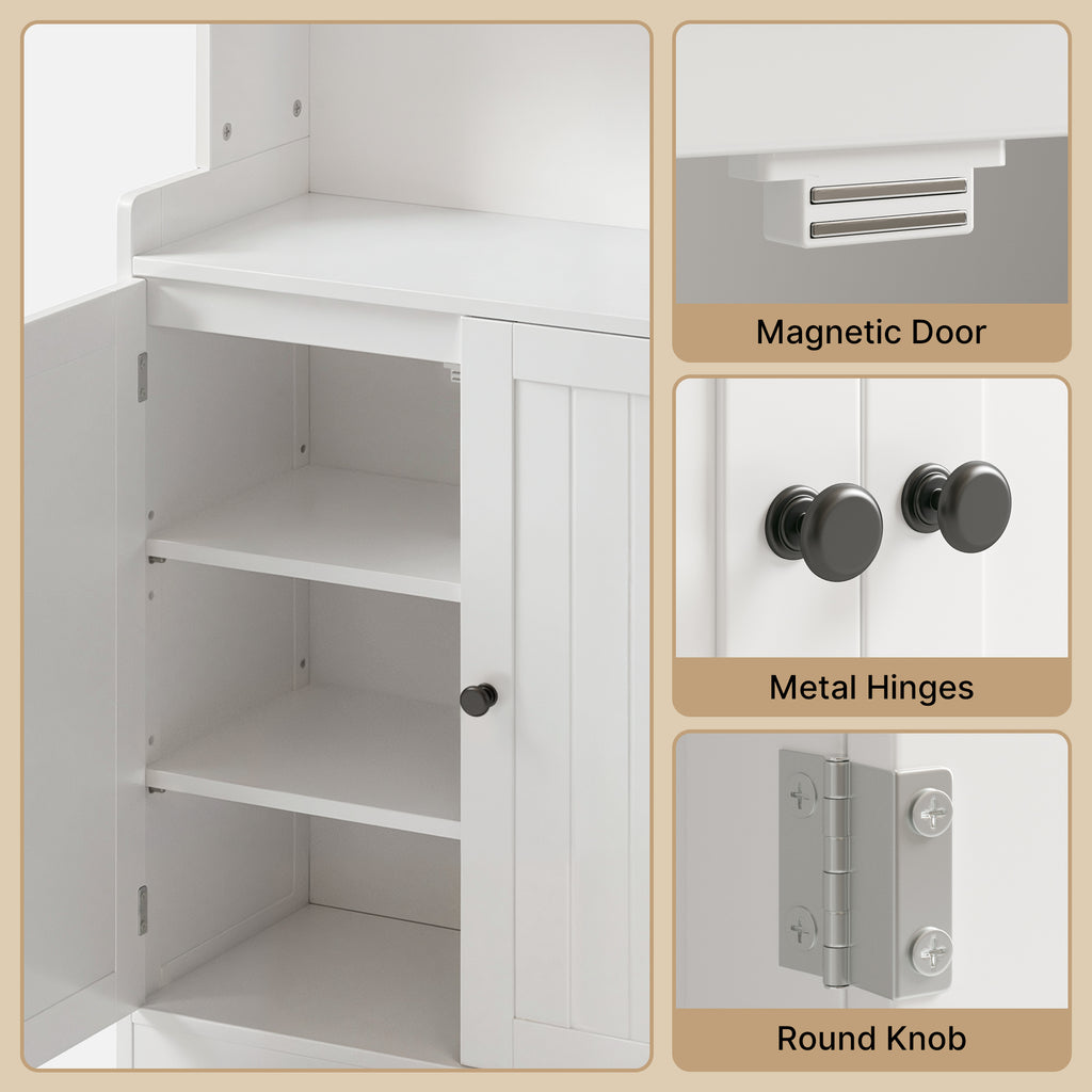 The Aiho Bathroom Storage Cabinet in Cloud White is a versatile and stylish solution for organizing your space. Featuring a sturdy, freestanding design, it offers two spacious doors and two adjustable shelves, allowing you to customize storage to suit your needs. Its elegant yet functional design makes it perfect not only for bathrooms but also for dining rooms, kitchens, and living rooms. Crafted in a sleek Cloud White finish, this cabinet seamlessly blends into various interior styles, providing ample storage while enhancing the aesthetic appeal of your home.