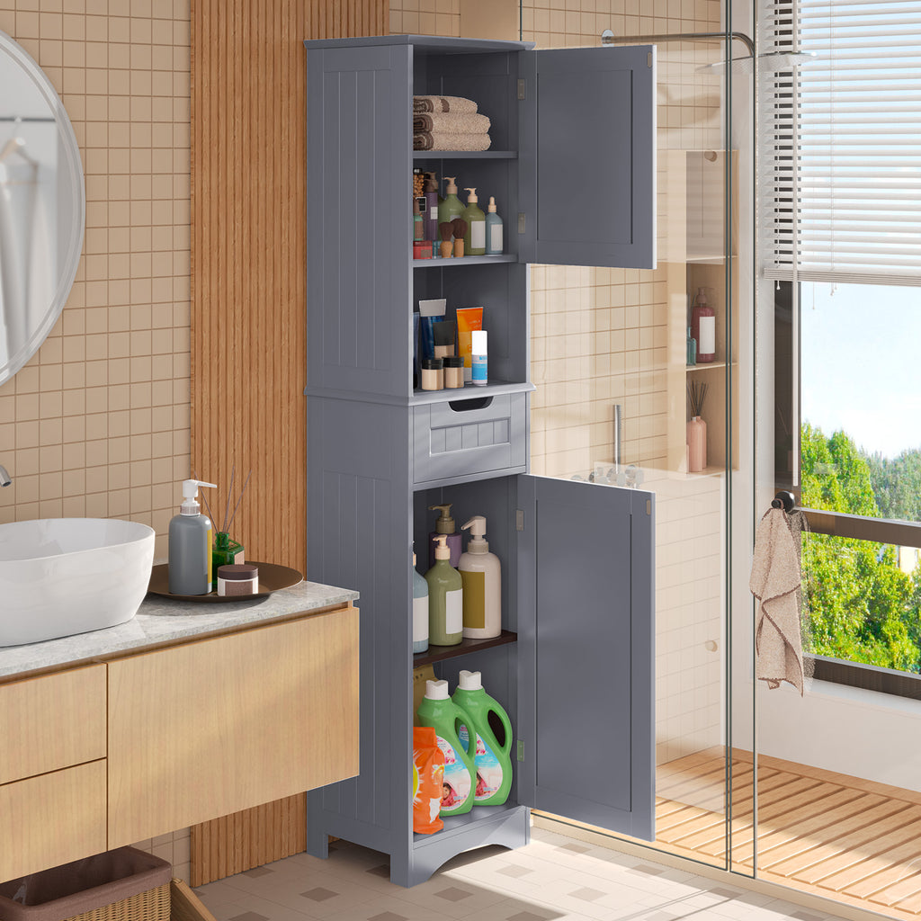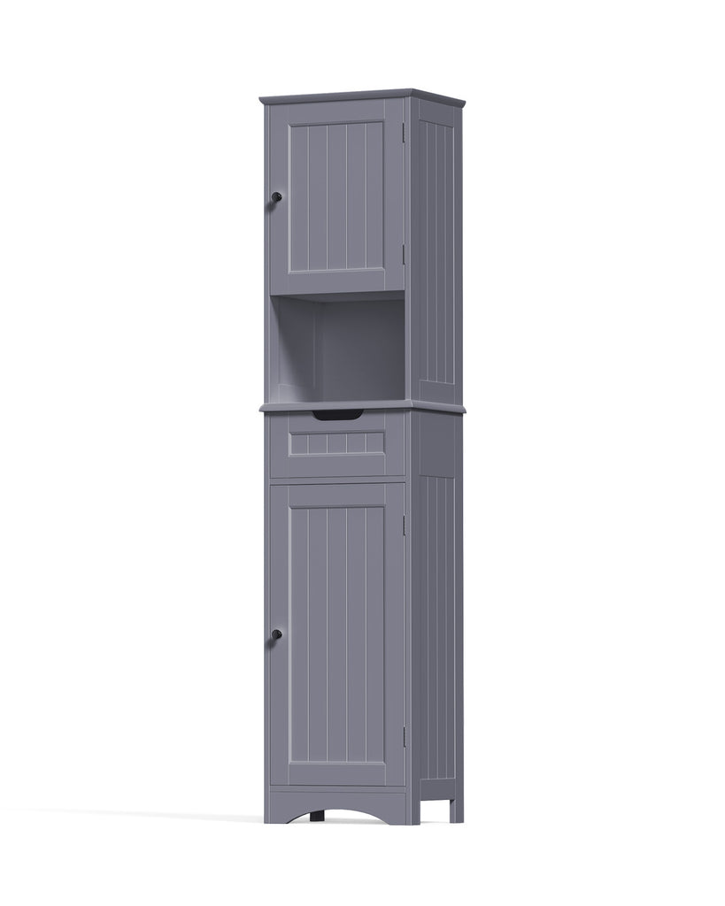 Bathroom Storage Cabinet, White Linen Cabinet, Narrow Tall Cabinet Storage Tower with Door ,Drawer and Open Storage - Gray