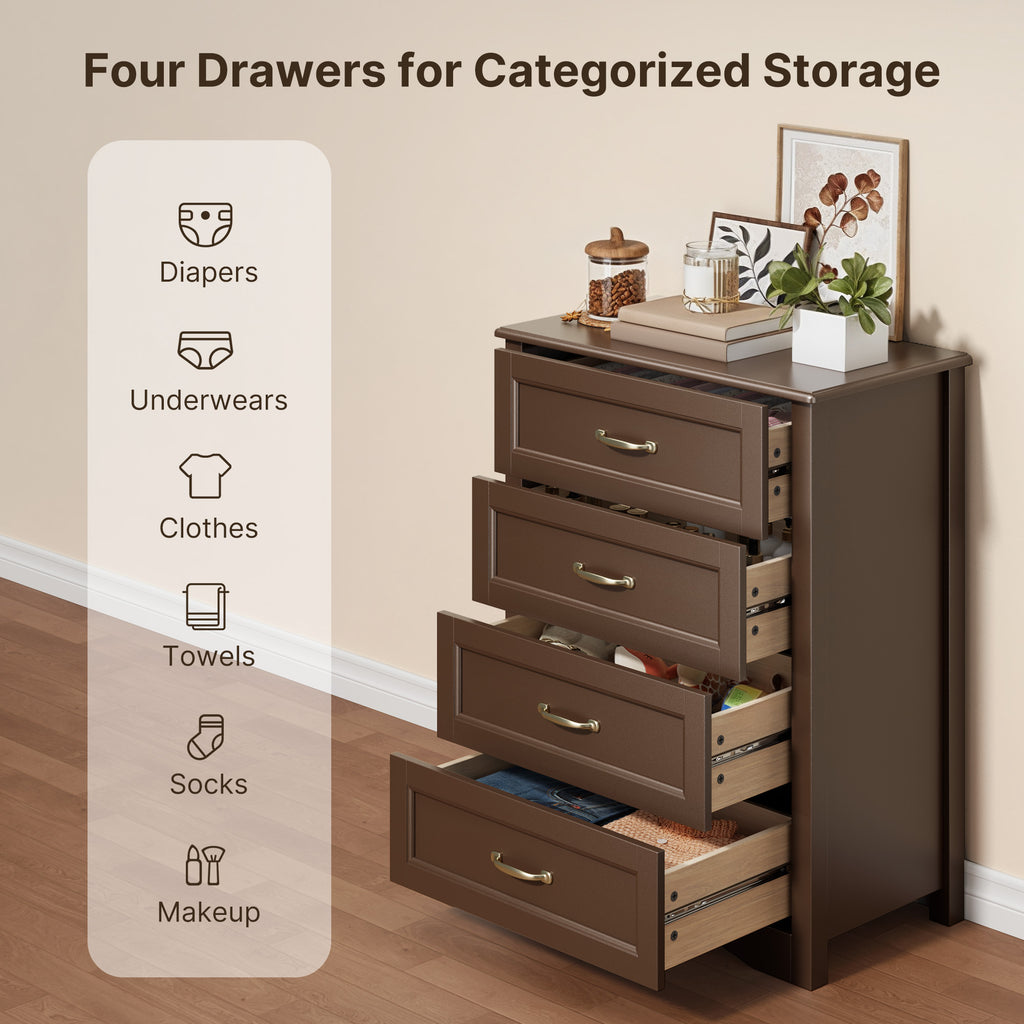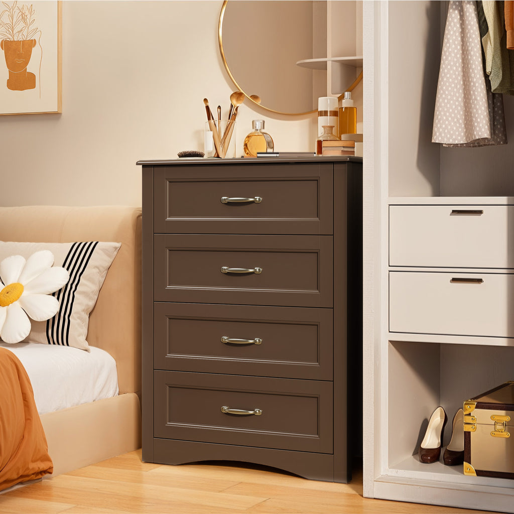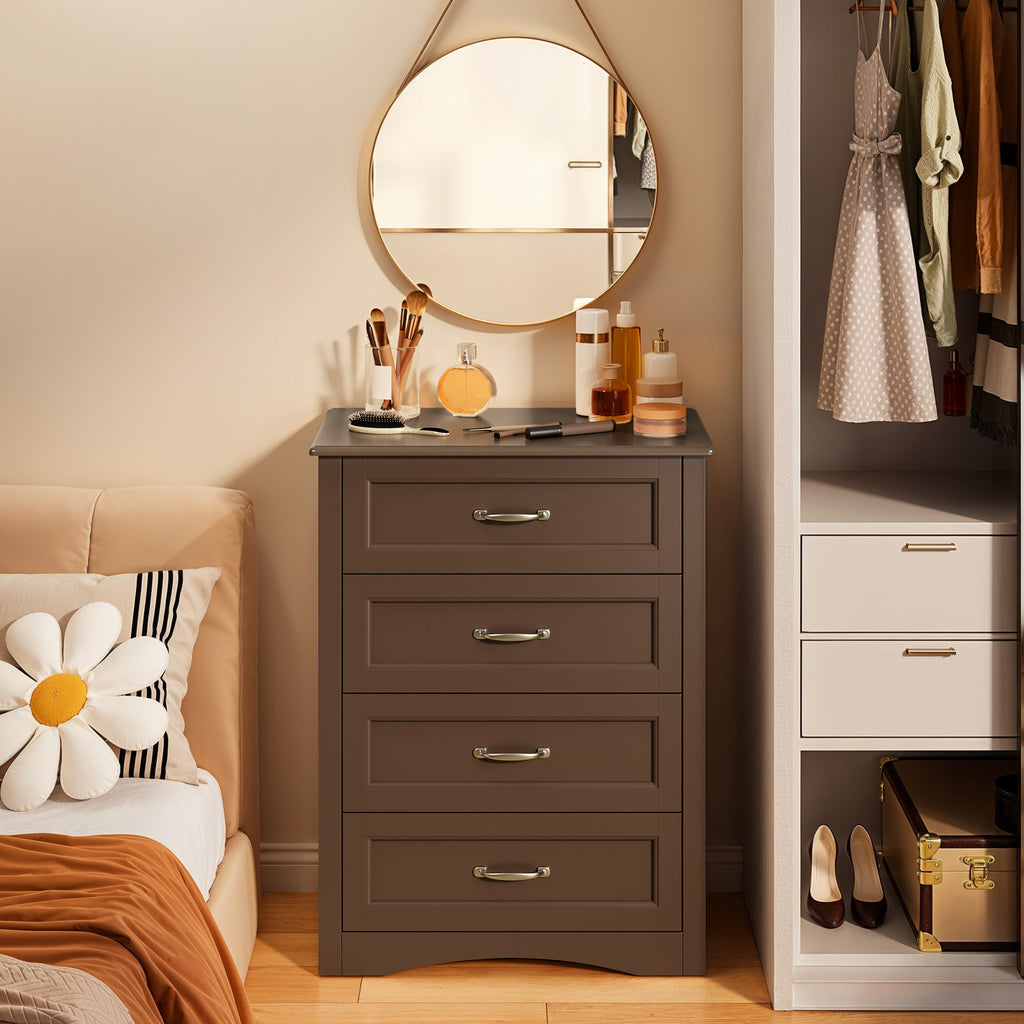 Brown Dresser with 4 Drawers, Vertical Storage Dresser for Bedroom, Hallway, Entryway, Closet Organizer, Nightstand Bedside Table Furniture