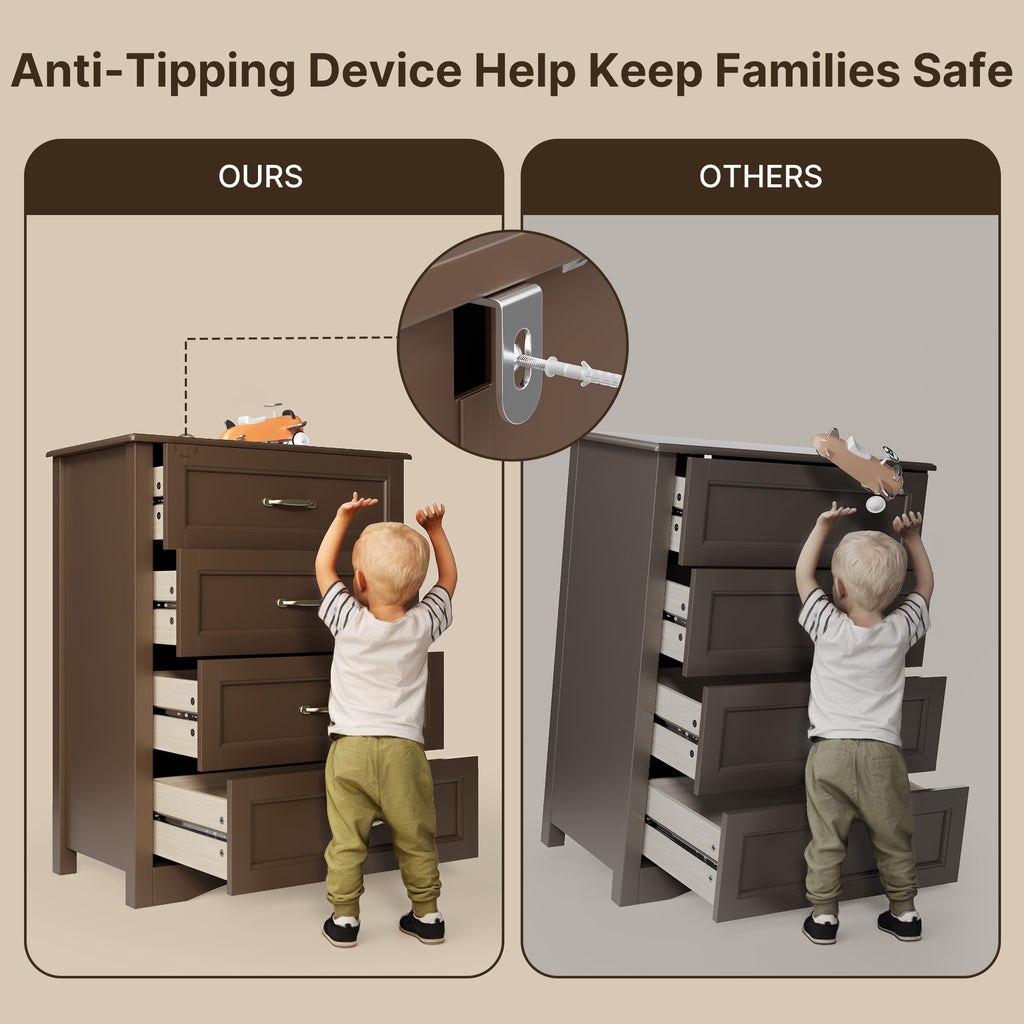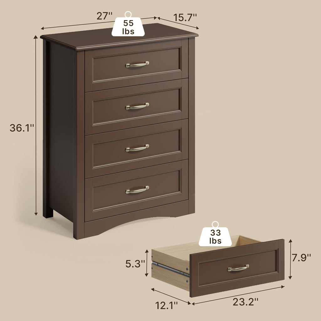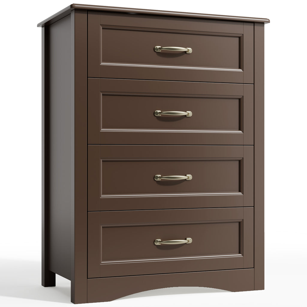 Brown Dresser with 4 Drawers, Vertical Storage Dresser for Bedroom, Hallway, Entryway, Closet Organizer, Nightstand Bedside Table Furniture