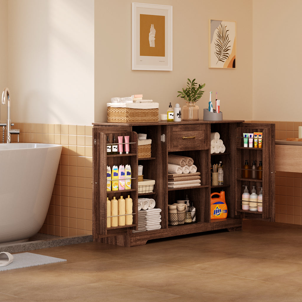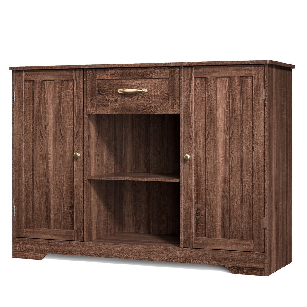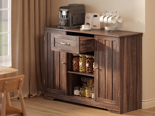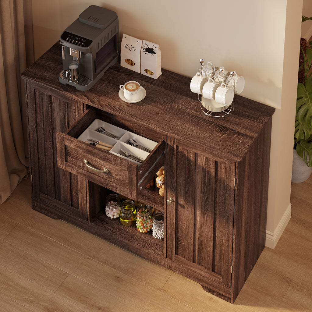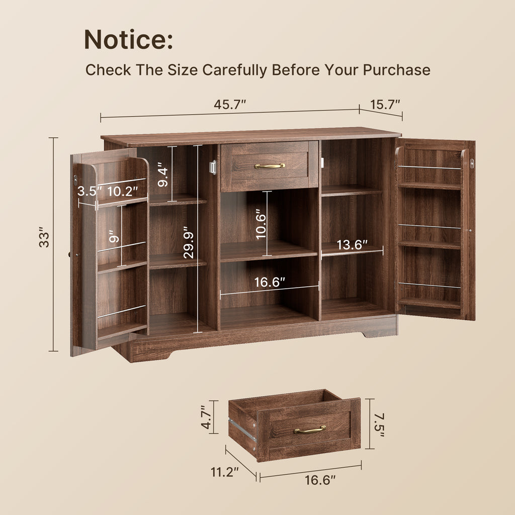 Coffee Bar, Aiho 45" Kitchen Storage Cabinet, Sideboard Buffet Cabinet with 14 Shelves, 1 Drawer - Brown