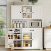 Maximize your kitchen's potential with our extra-tall, freestanding pantry cabinet, designed to solve your biggest storage challenges. With a massive 15 shelves (2 adjustable) behind 5 full-size doors and a convenient drawer, this cabinet provides a dedicated home for all your dry goods, small appliances, cookware, and kitchen essentials. The sturdy 42-inch wide top is perfectly sized to hold a microwave, toaster oven, or other frequently used items.