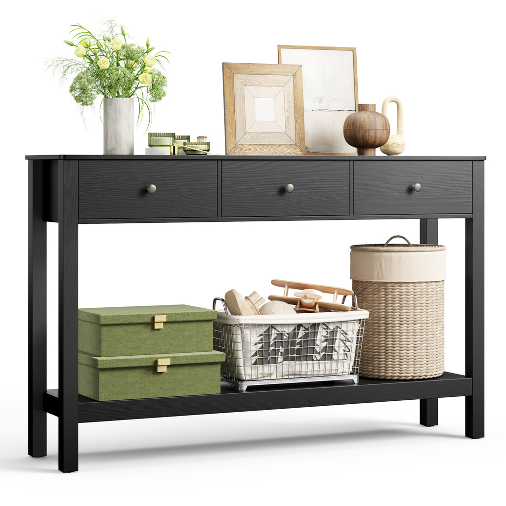 Console Table with 3 Drawers, Wood Entryway Table with Storage Shelf, Sofa Tables Narrow Long for Living Room, Entryway, Hallway, Foyer - Black