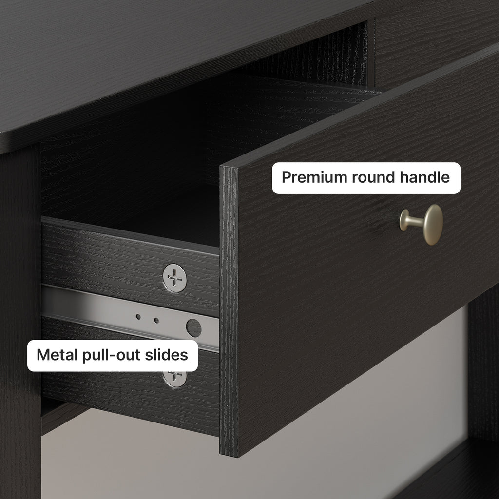 Store everything from keys and shoes to books and dĂŠcor! Three smooth-glide drawers (with noise-free slides!), a roomy tabletop, and a bottom shelf offer layered storage. Perfect for quick-access essentials or displaying favorite items.