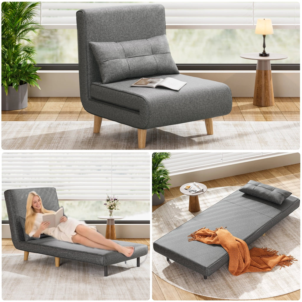 Convertible Folding Sofa Bed, Lofka Sleeper Couch with Pillow & 6-Position Adjustable Backrest for Living Room, Home Office, Dark Grey