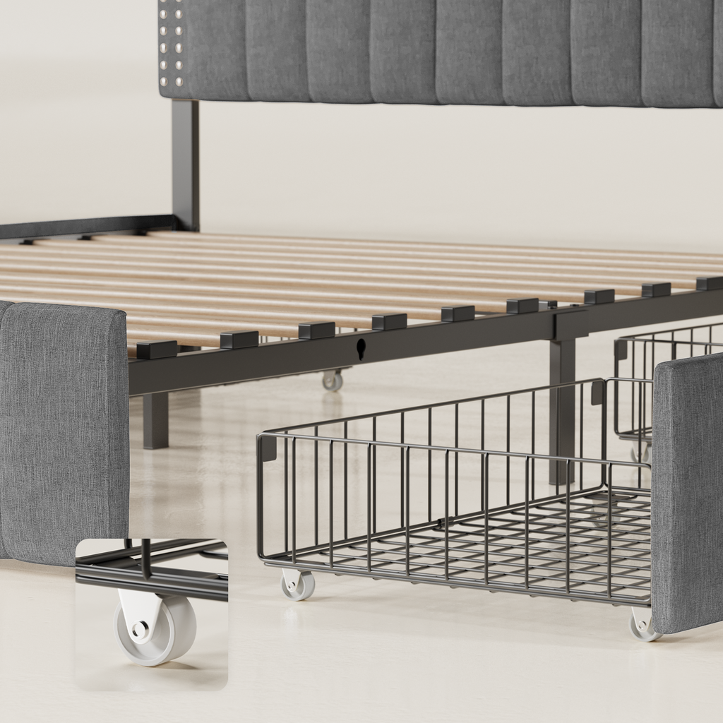 🏡【Ample Storage Drawers】The bed frame is equipped with 4 wheeled storage drawers, allowing you to store extra bedding, clothes, or essentials under the mattress by simply sliding out the drawers, saves space and keeps your home organized.
